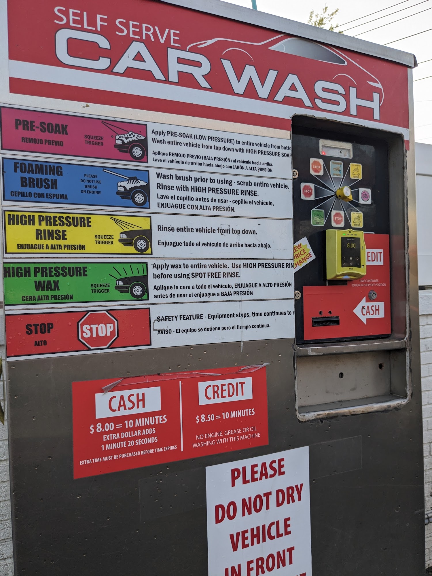 Self service car wash is great. They accept cash and card, you don't need to use coin any more. I think it's better than BP. A little more expensive. 8 dollars for 10 mins.