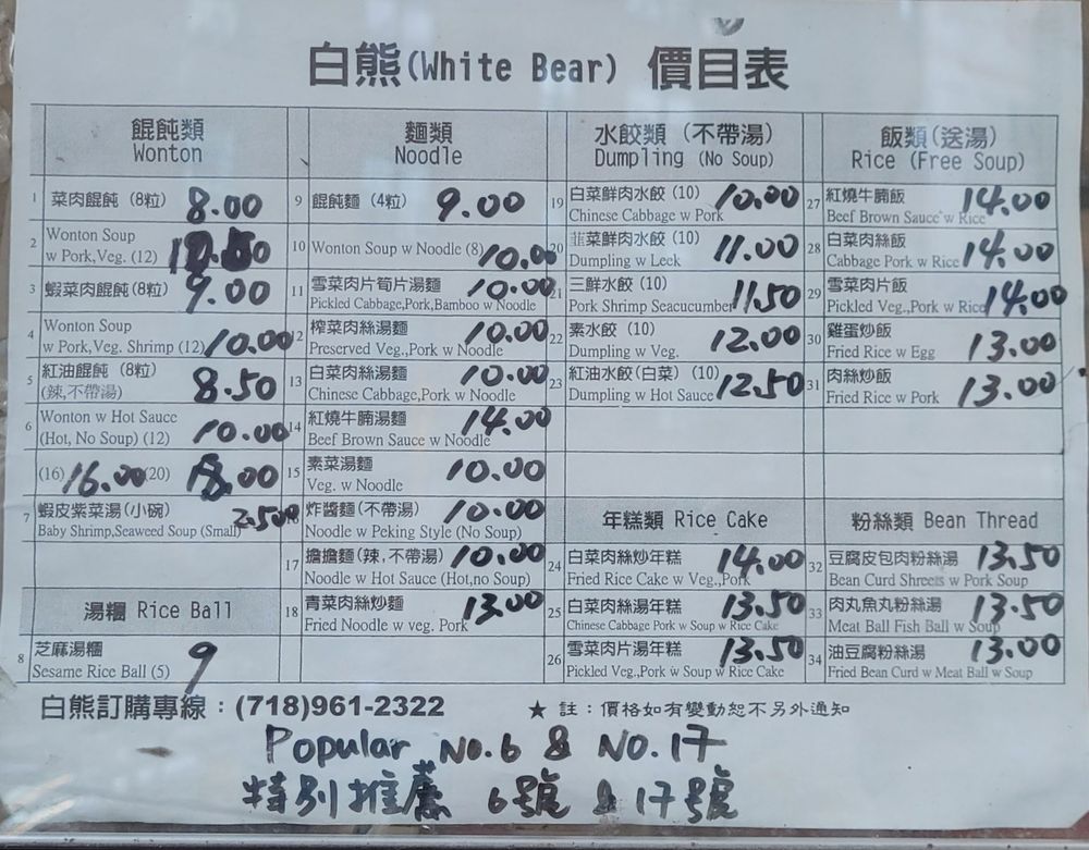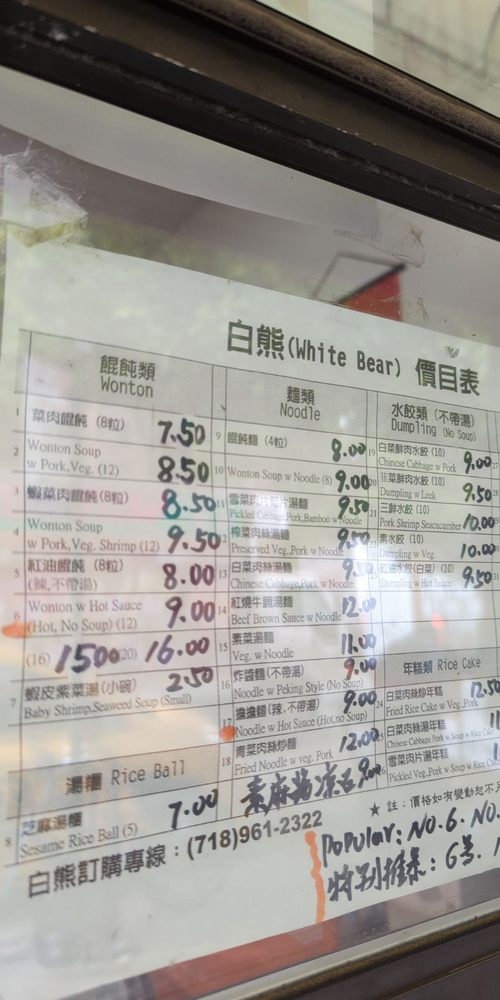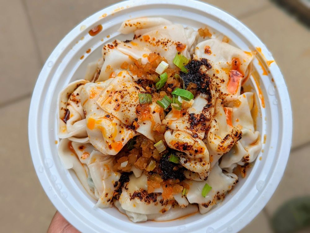 The White Bear is a well-known restaurant that specializes in delicious dishes, especially their legendary spicy wontons, which are a must-try for any food lover. The restaurant operates on a takeout-only and cash-only basis, which may be inconvenient for some customers. Despite this, the #6 wontons in chili oil are highly praised and considered worth the effort—they are spicy, flavorful, and full of taste. Customers also enjoy their dan dan noodles, which are more Northern style rather than traditional Sichuan. The restaurant is a small, hole-in-the-wall place, served through a slit in a door, adding to its unique charm. The vibrant food scene nearby shows the diversity of cuisine available, from Chinese to Indian, Mexican, Jewish, African, and Tibetan. Many visitors recommend eating the food in the street or at the park just down the block. Overall, the White Bear offers a satisfying experience for those seeking authentic Chinese flavors and spicy dumplings.
