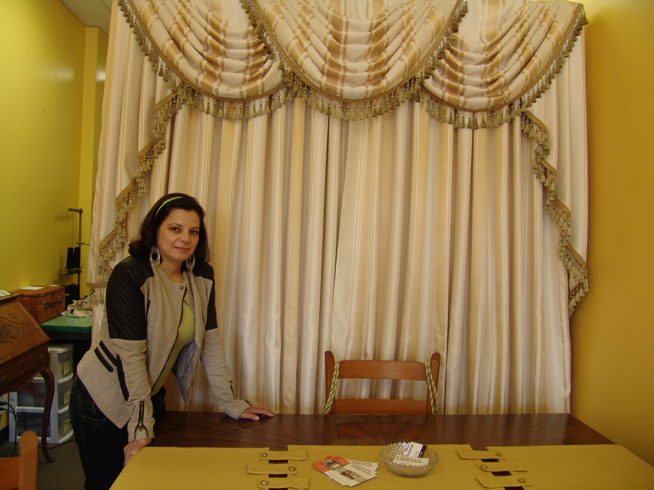 She did great work. I had a sofa pillow zipper broken and was done on the spot. In addition, it looked better than before .. good detailed work.