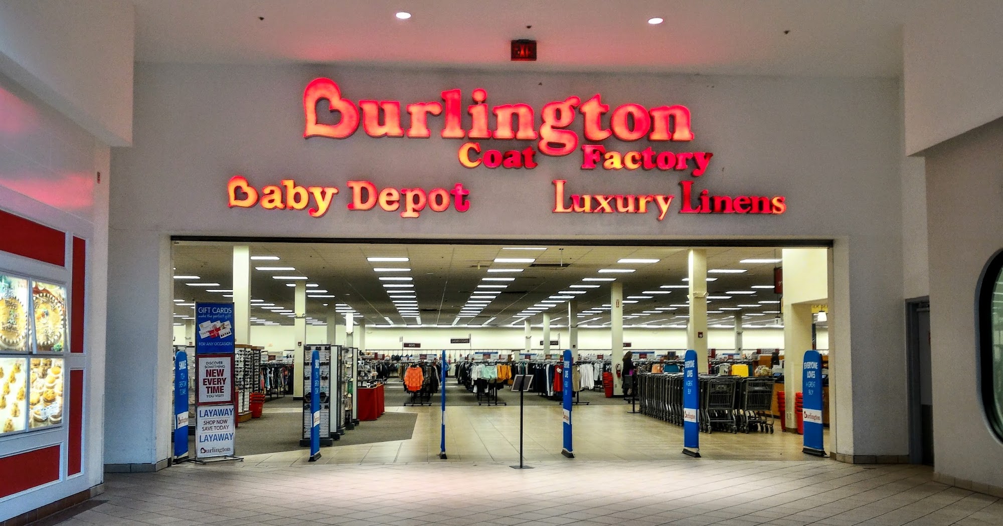 Burlington is a discount retailer known for offering WOW deals on popular brands for the whole family and home. The store in Horseheads, NY, features clothing for ladies, men, kids, and babies, along with beauty products, shoes, accessories, and home décor, all at prices up to 60% off compared to other retailers. Shoppers can find amazing deals, especially during events like the Red Hot Clearance Event, which takes place all month with regular markdowns. Customers appreciate the wide selection of name brand clothing, including well-known labels like Calvin Klein and Tommy Hilfiger. The store is clean and organized, making it easy to browse different departments. Although some shoppers feel the store can be picked over at times, they often find great items if they take the time to look. The shoe department is well-stocked, and there are occasional layaway options during the holiday season. However, some customers wish for a better selection of home goods and toys. Overall, Burlington offers a variety of affordable options, particularly for back-to-school shopping and seasonal clothing.
