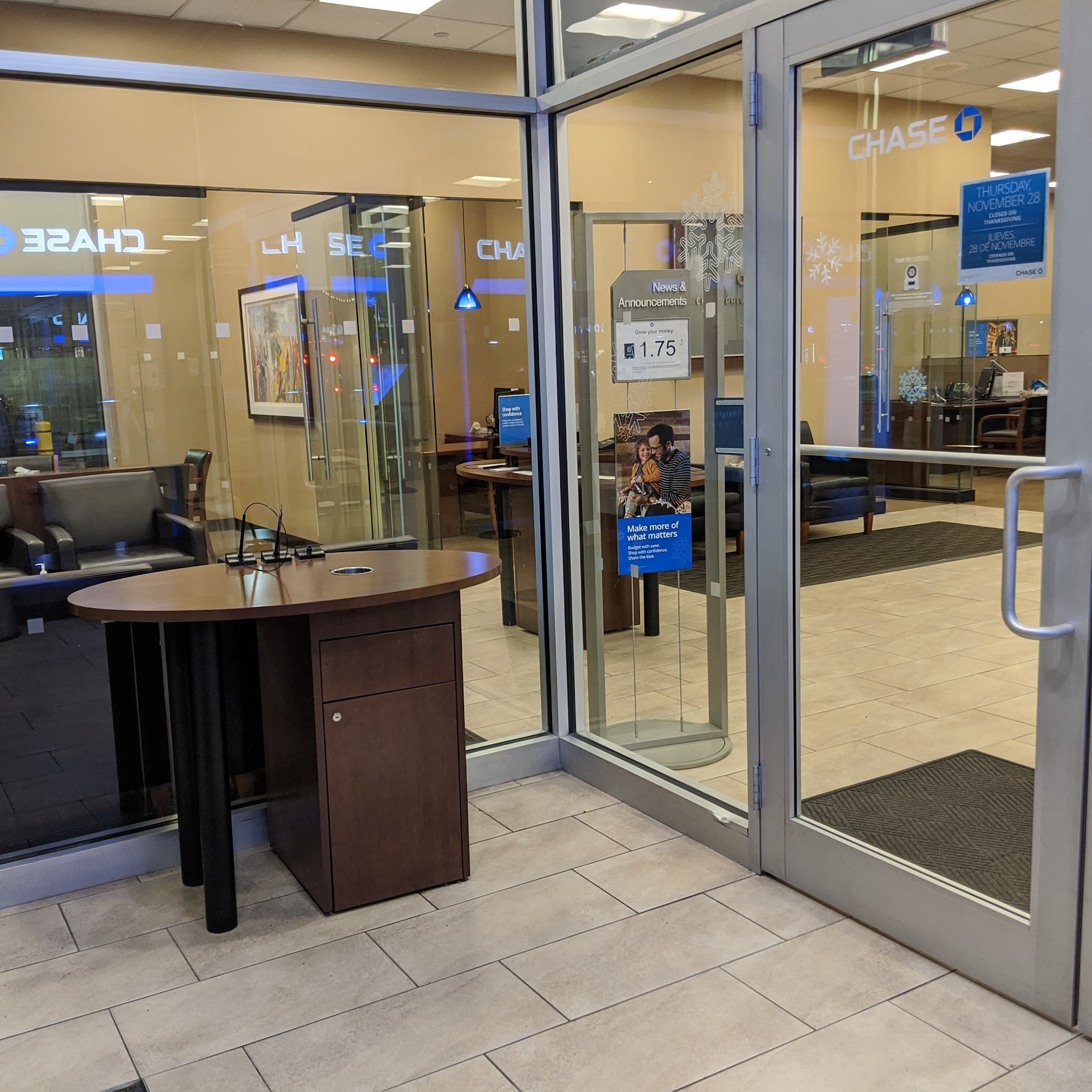 One of the worst chase banks best part is the security guard the card reader to get into the atm hasn't been working for over 2 months now how do you expect people to access their money when you are closed it truly is unbelievable