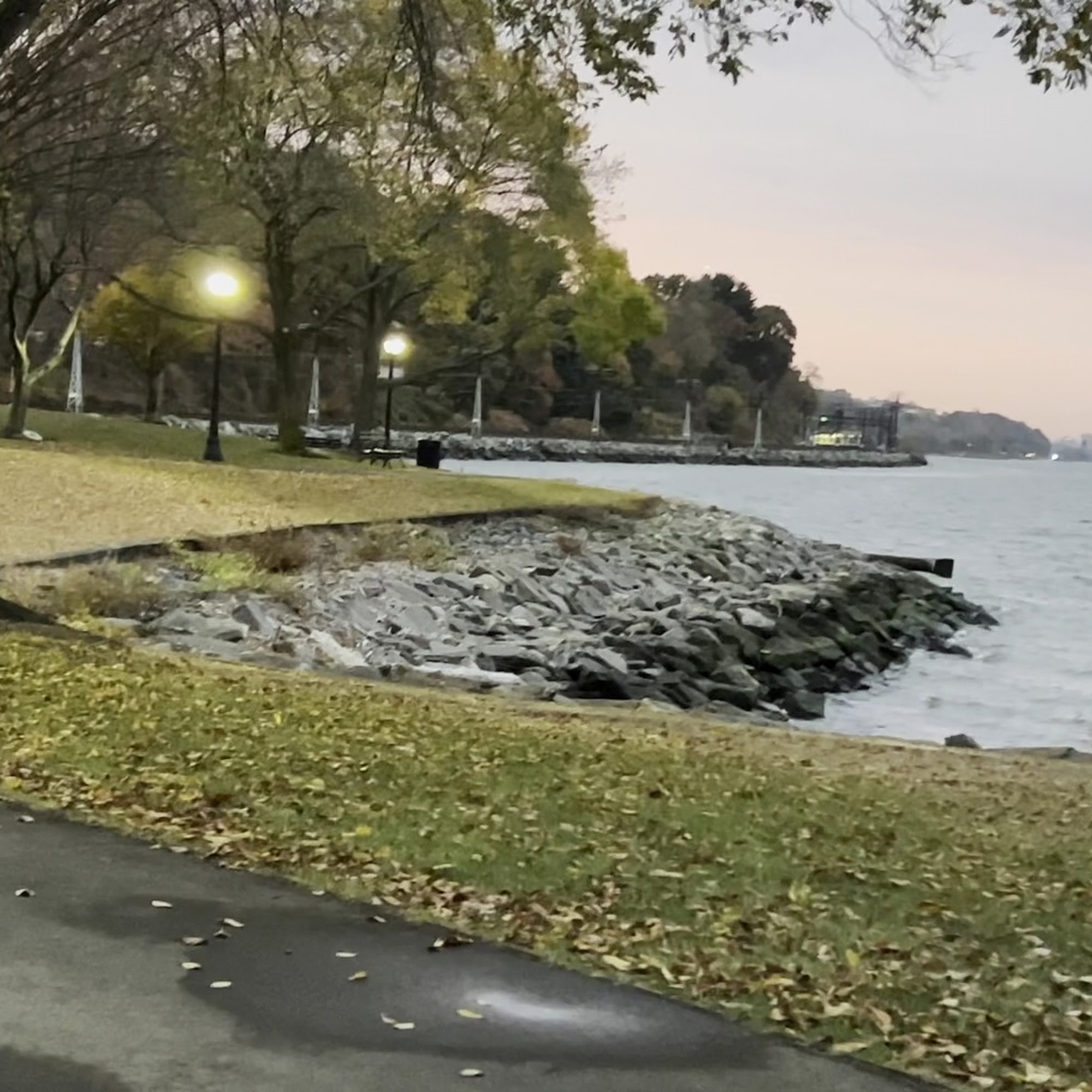 Lovely view of New York City and pleasant park to sit and watch the boats on the river. There are toilets so you can spend some time here.