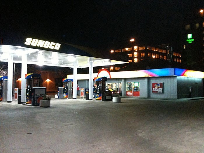 This 7 Eleven is a great place to get gas and a snack