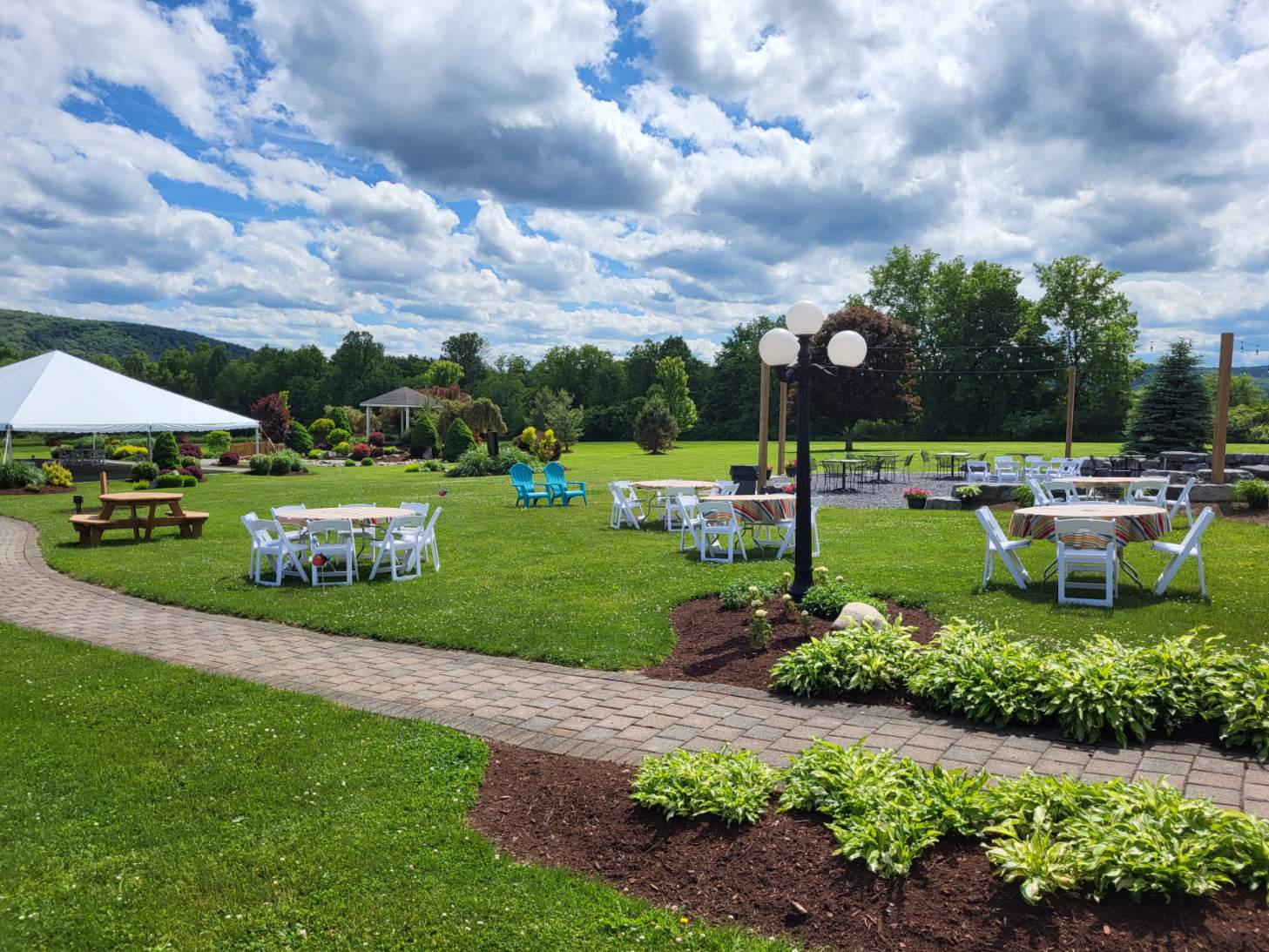 Private venue for hosting all types of events. Weddings, Proms, Corporate Events, Conferences, Celebrations of Life, Fund Raising Events, Holiday Parties, More... Private parking, in-house catering, full liquor license, in-house DJ & Photo Booth. Located in the Finger Lakes region just outside of Ithaca and only 10 minutes from Cornell on 20+ landscaped acres with beautiful country views. Outdoor ceremony site, large landscaped stone patio and fire pit areas, 5000 square foot banquet room perfect for hosting events from 50-300 guests and more outside. Call today to see how we can make your event the best it can be. ~John & Laurie