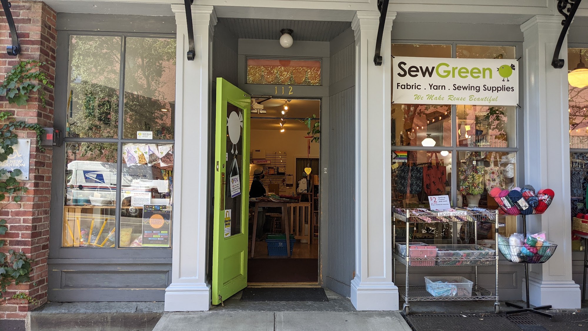 SewGreen is an amazing resource and generous community business that provides incredible customer service. It is a store filled with everything from fabric, books, and notions to refurbished sewing machines, all saved from people's sewing stashes and kept from being tossed. Customers find absolute treasures, a huge variety of fabrics and accessories, and very reasonable prices. The staff are helpful and genuine, offering unobtrusive but supportive service for projects. The business supports sustainability by keeping materials in circulation and donates to local schools and programming. For a host of reasons, customers are enthusiastic supporters, happily visiting and feeling good about their purchases, often traveling to shop there.
