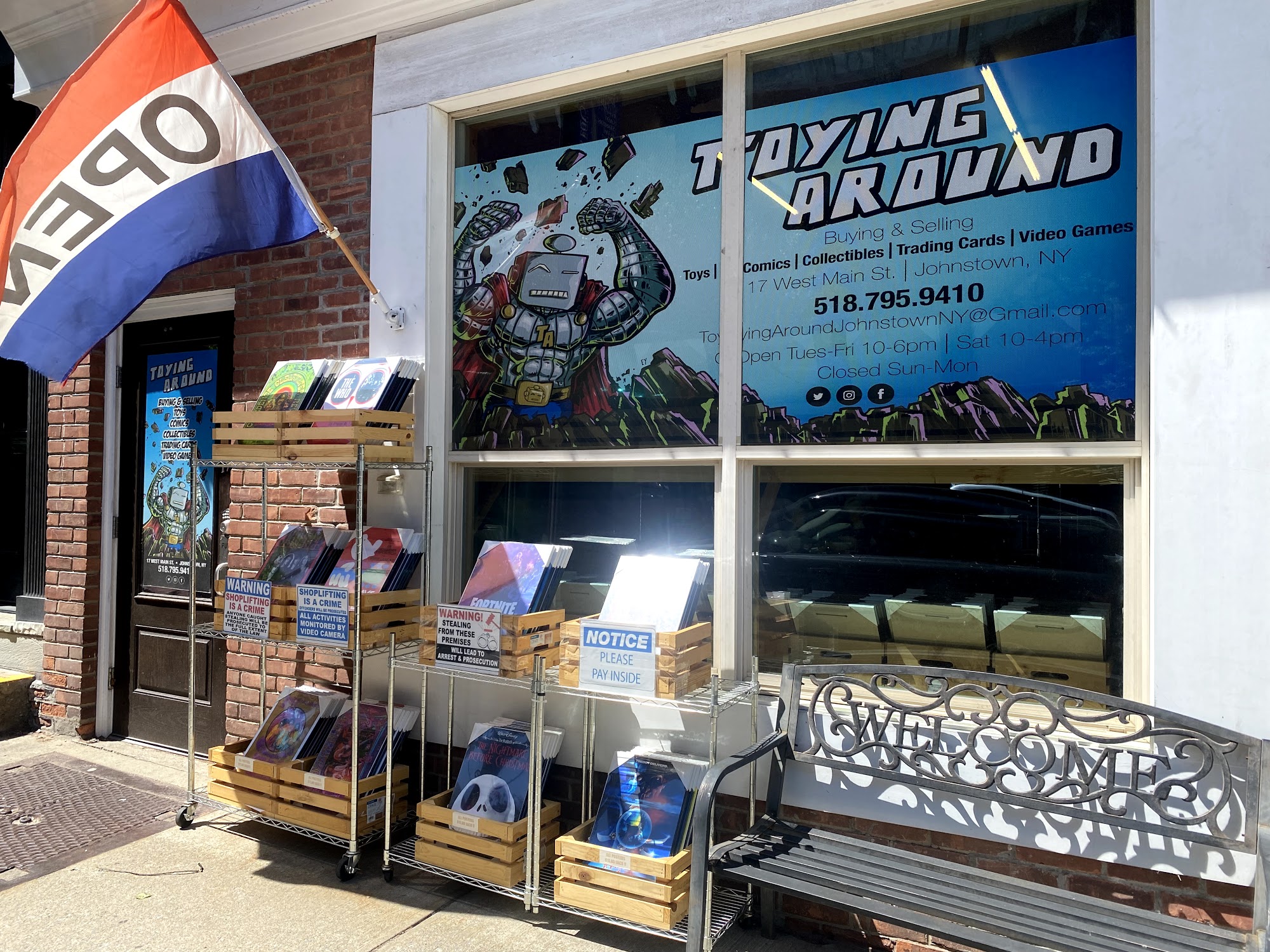 Toying Around is a family-owned toy store located at 38 West Main St., Johnstown, NY. Established in 2012, the store specializes in buying and selling action figures, video games, trading cards, comic books, and collectibles. Recently moved to a larger space, it maintains a welcoming atmosphere with a clean layout and impressive prices. Customers can enjoy a variety of products, from modern action figures by popular brands like Hot Toys, Sideshow, and Funko to unique gifts and freeze-dried candy. The knowledgeable owner is dedicated to providing positive experiences, especially for kids, making it a great destination for families. Toying Around also offers an arcade for added fun and encourages visitors to bring old collectibles for cash or store credit. The store hosts an annual block party with a fantastic variety of vendors, food, and activities, enhancing the community feel. Open Tuesday to Sunday, Toying Around is a must-visit for anyone looking for something special in toys and collectibles. Don't forget to say hi to Krypto, the friendly store dog!