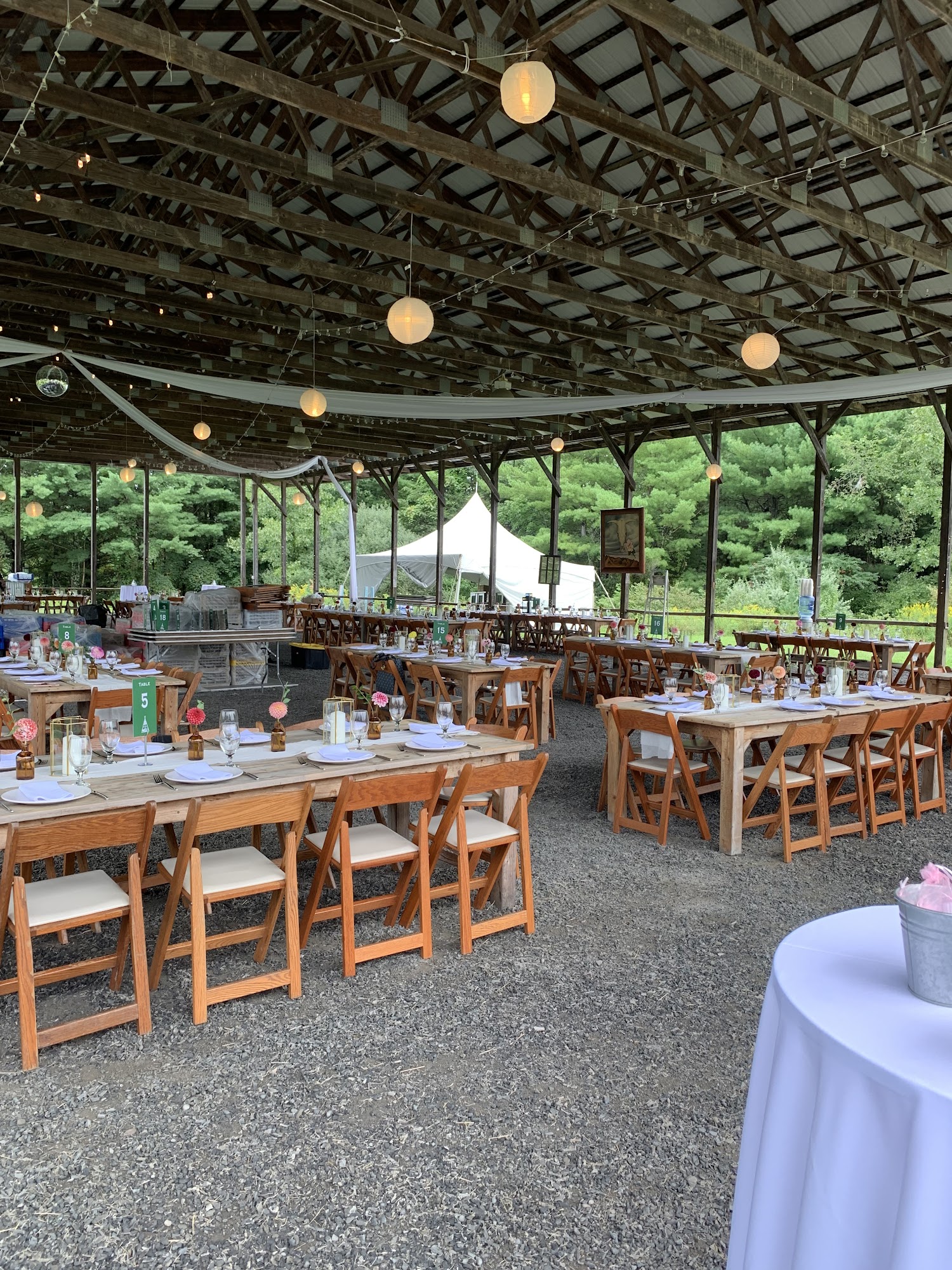 Beautiful outdoor wedding venue with a large covered pavilion for parties and receptions