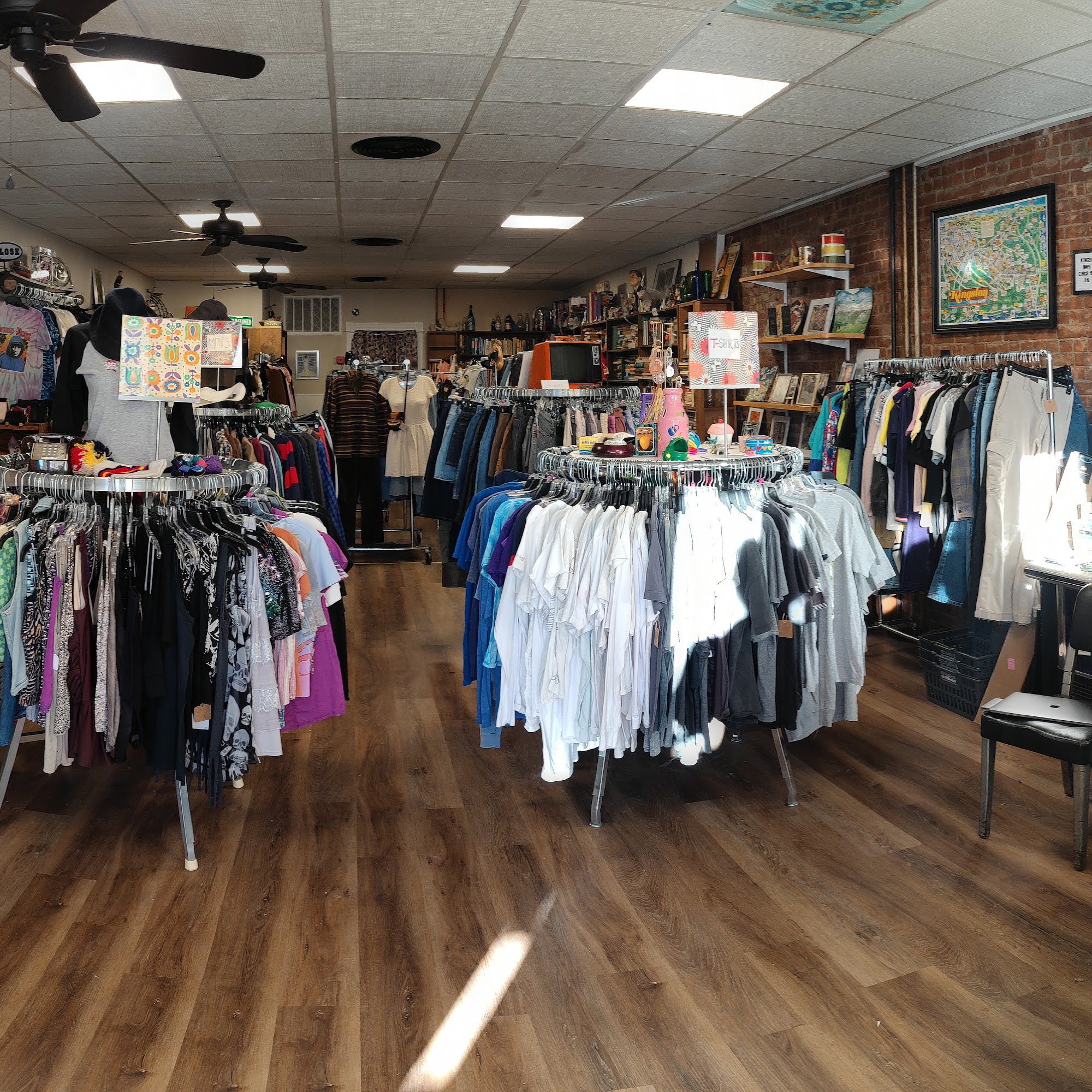 Rewind Kingston is a family-owned shop located in Midtown, offering a curated selection of thrift, vintage, deadstock, and upcycled clothing, as well as used books, gifts, vinyl, antiques, and art. The store has a warm and friendly atmosphere, where customers are treated like family. Many visitors appreciate the fantastic and affordable selection, featuring popular brands like Free People and Zara, along with unique vintage finds. In memory of their daughter/sister Cassidy, Rewind donates 10% of all proceeds to local mental health organizations, reflecting their commitment to the community. The shop also hosts Wellness Wednesdays, featuring free mixed media journaling for all ages. While the overall experience is highly praised, some customers have expressed a desire for a wider range of sizes in clothing. Despite this feedback, Rewind Kingston is celebrated for its great taste in curated items, immaculate service, and the special touch that the owners bring to the store. It's a must-visit destination for anyone in Kingston looking for hidden gems and a friendly shopping experience.