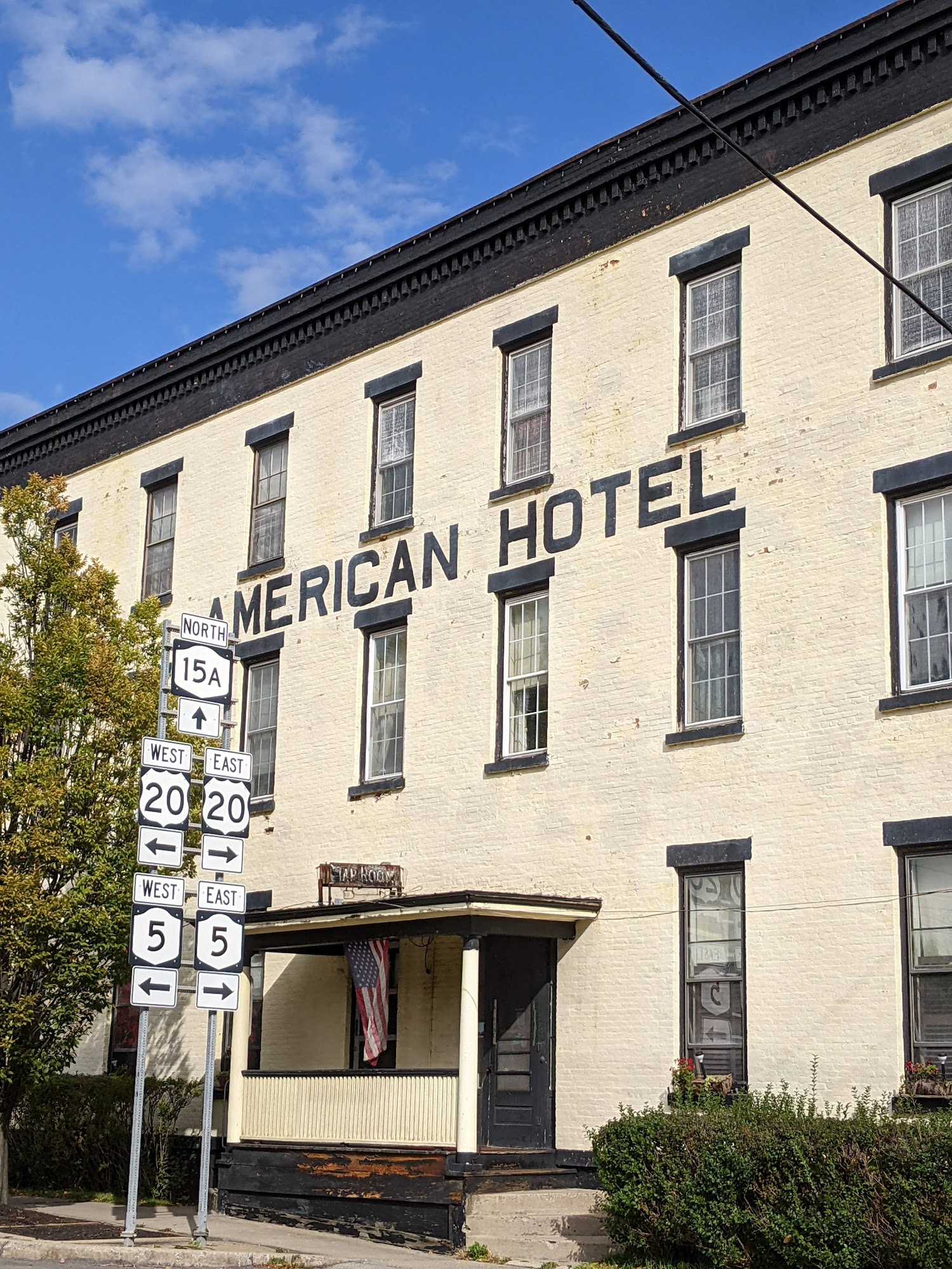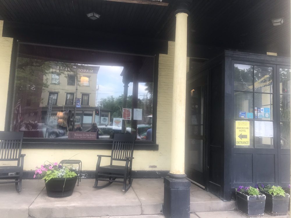 The American Hotel of Lima is a very quaint and historic local gem, an old hotel from the 1800s. It is a beautiful older hotel with a restaurant and bar, featuring an old cash register and phone booth, offering a warm, no-frills atmosphere. The food is excellent, like a warm hug to the belly, focusing on great comfort food. The menu includes items like a grilled cheese, a flavorful turkey reuben, and a chicken spiedie that is to die for. They always have a great variety of five to seven delicious soups, with the split pea being a favorite. They also host "comfort food" nights that always hit the spot, and even their tossed salads are on point. The service makes you feel like family, with nice folks and old school principles. The staff are some of the kindest people, providing excellent service. It is considered a must-see on route 5&20.