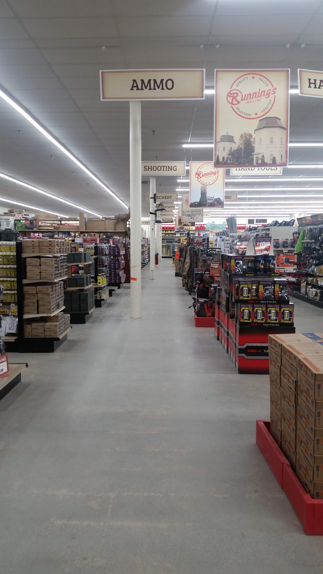 Runnings is a friendly, local store that offers a wide range of products for home, farm, and outdoor needs. It has a large selection of quality merchandise at competitive prices, including name-brand clothing, tools, pet and auto supplies, sporting goods (such as firearms), and farm and livestock equipment. The store is well-stocked, clean, and easy to navigate, with good signage in the aisles. Customers appreciate the helpful and knowledgeable employees, who are friendly and often go out of their way to assist. The store welcomes leashed pets and provides a welcoming atmosphere for all visitors. Though not as large as some big-box stores, Runnings is perfect for home furnishing and work needs, with employees who are focused and willing to help. Many customers enjoy the variety and the excellent service, making each visit a positive experience.