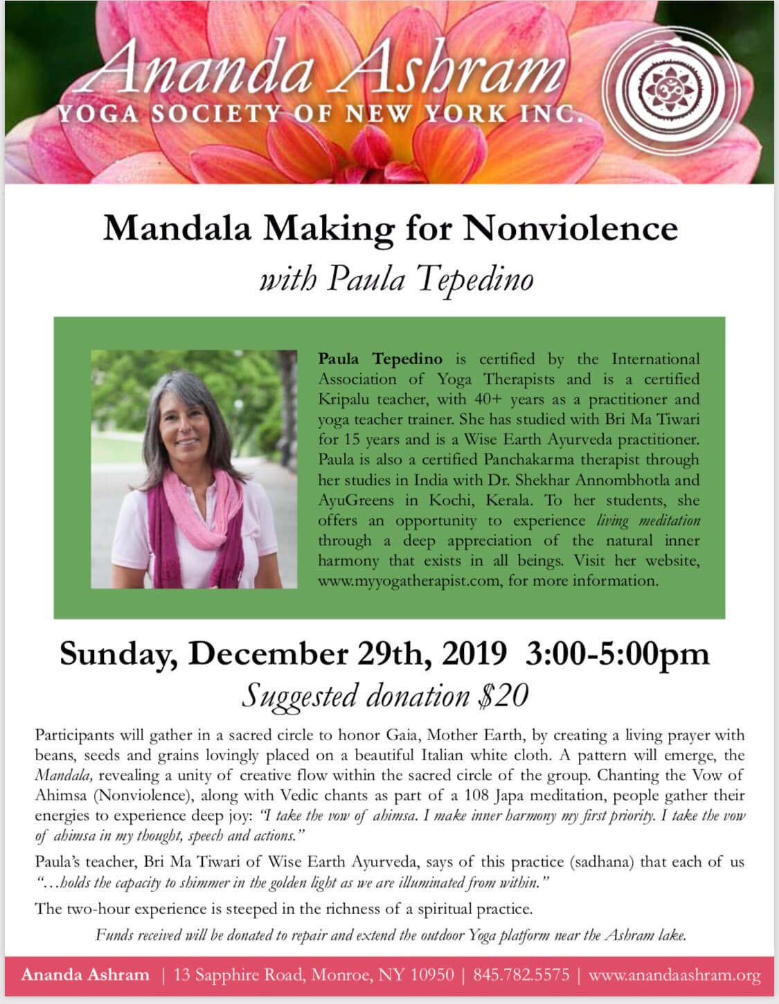 Great place to meditate and do yoga. Has a wide variety of spiritual programs. The staff are very friendly and it is a warm, welcoming environment.