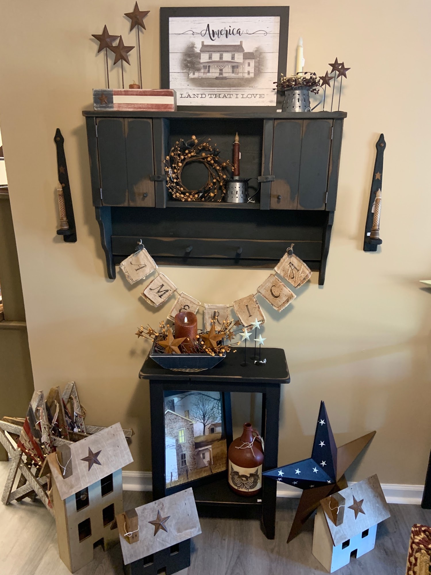 Primitive, country and rustic decor for the home. Our products will add charm to your home. Visit our shop in the Village of Montgomery, NY for primitive decor, country curtains, tinware, lighting, wall decor, furniture, candles, and many other decorative accessories for the home.