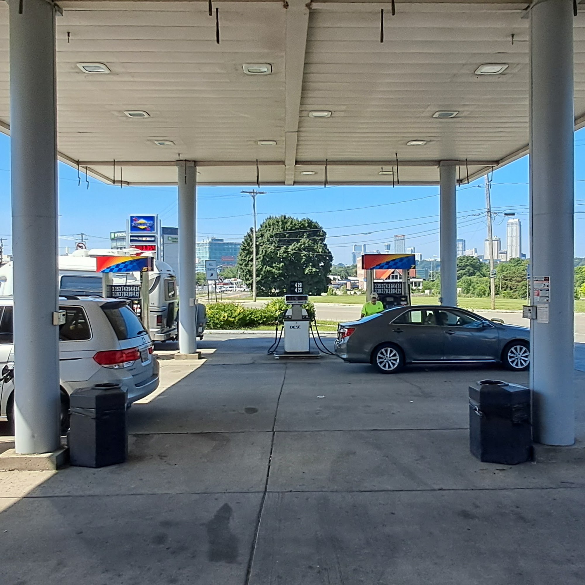 Closest to border so they charge MUCH more than nearby stations. Pump receipt didn't print, bathroom says "out of order" but is simply off limits to customers. Probably a good thing because it must be filthy like the rest of the place.