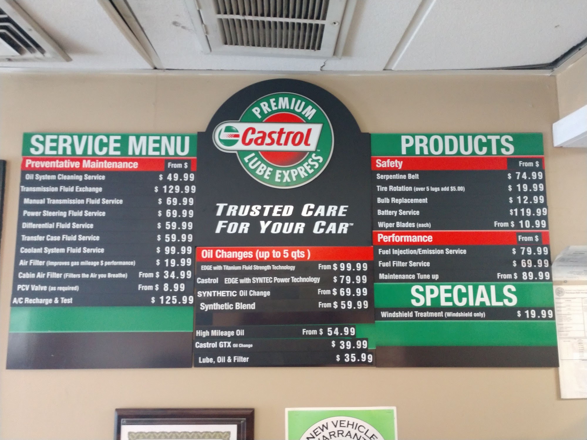 Incredibly nice and we drove right in on a Monday morning and were able to wait in the car as they did the change. They mentioned several other items in the car that were due for replacement and gave us the price but no pressure to get them done immediately.