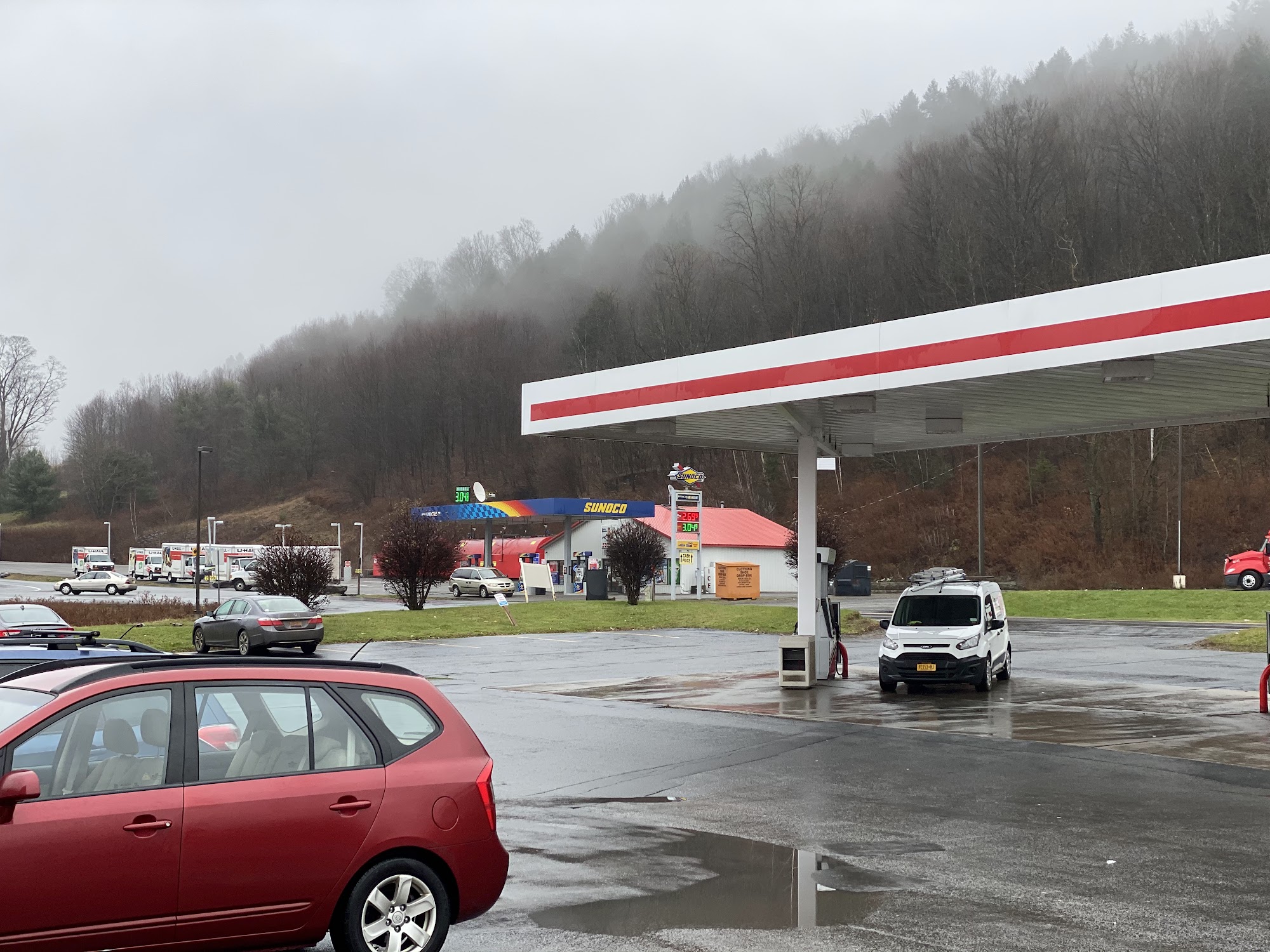 Expensive gas 3.29 but close to the highway and quiet parking lot for the night