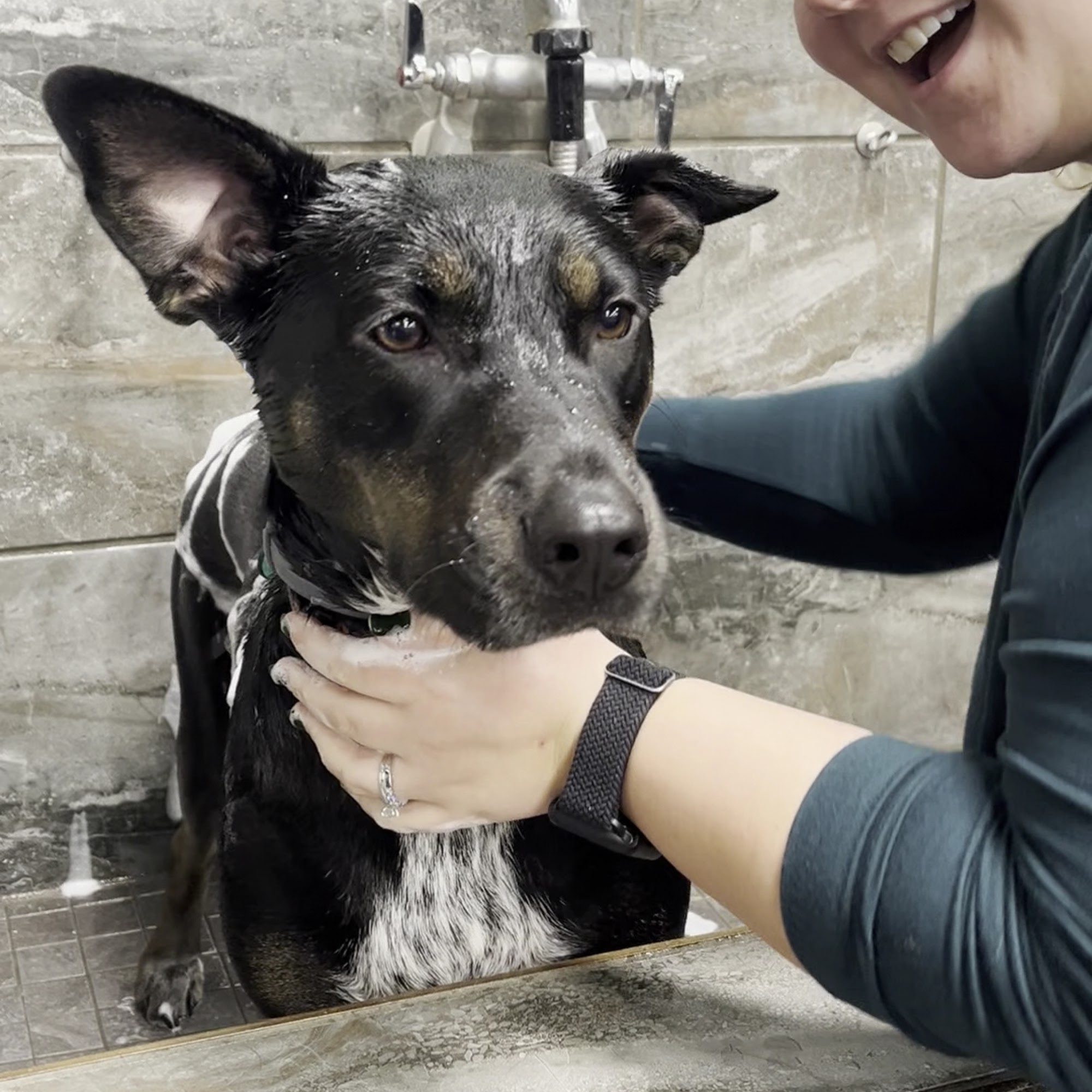 I have a very large dog and the self service grooming stations accommodate. It's always clean and the staff is very pleasant and helpful. Good selection of products.