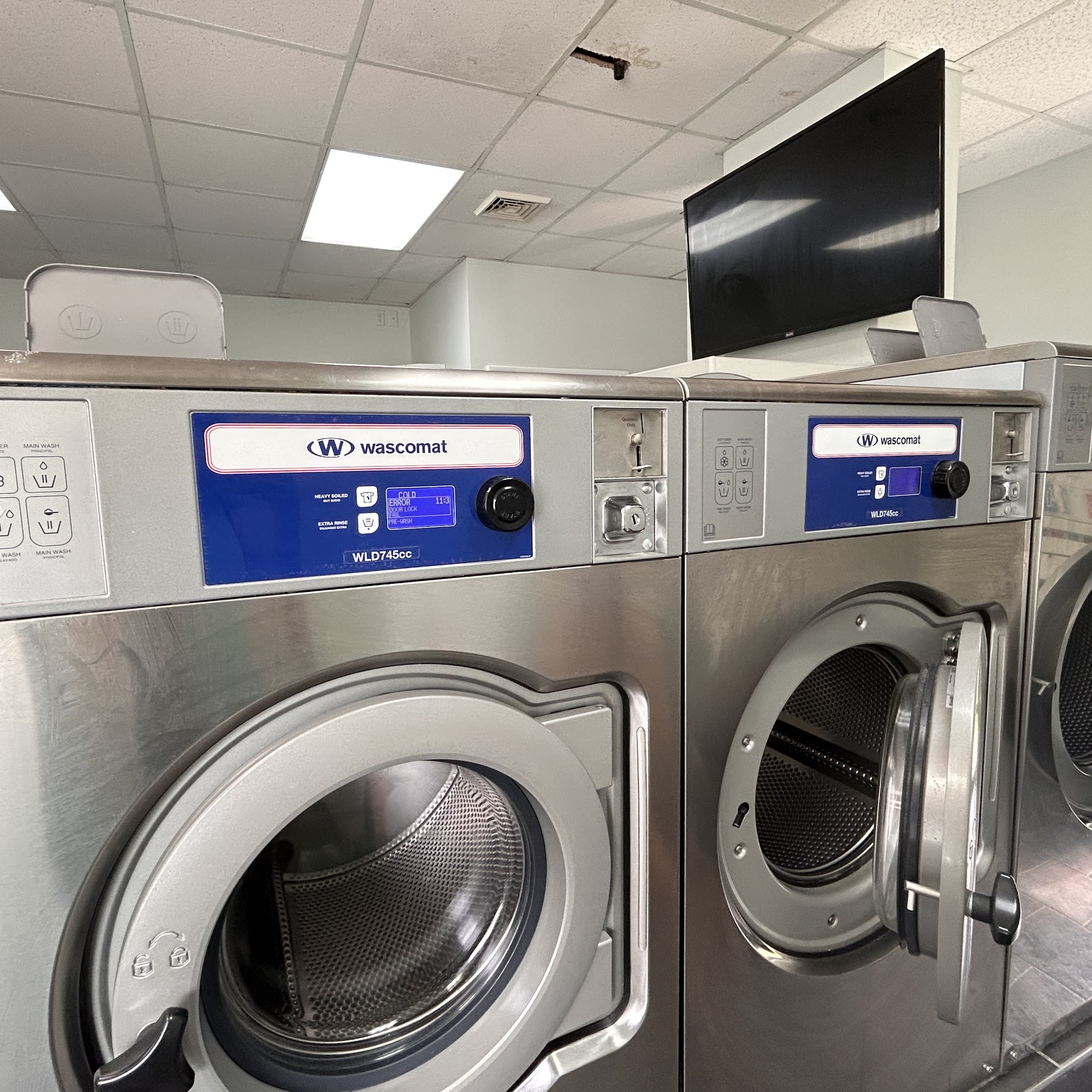 Good laundromat en general. Have different sizes of machines and good facilities, just missing a restroom.