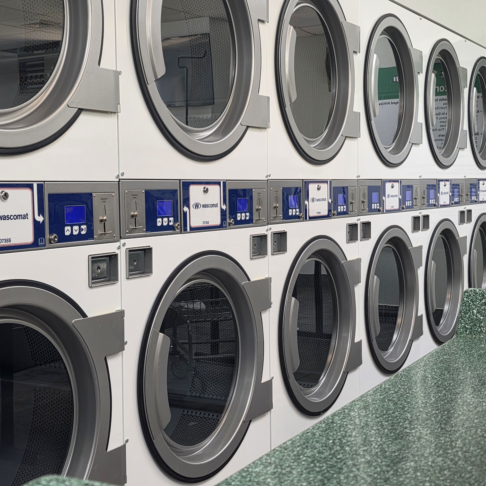 New machines. 6m@$0.25 dryer. Has the option for no heat for the items you don’t want heatet. No heat, low, medium & high. Largest wash is 8.00 bit expensive.