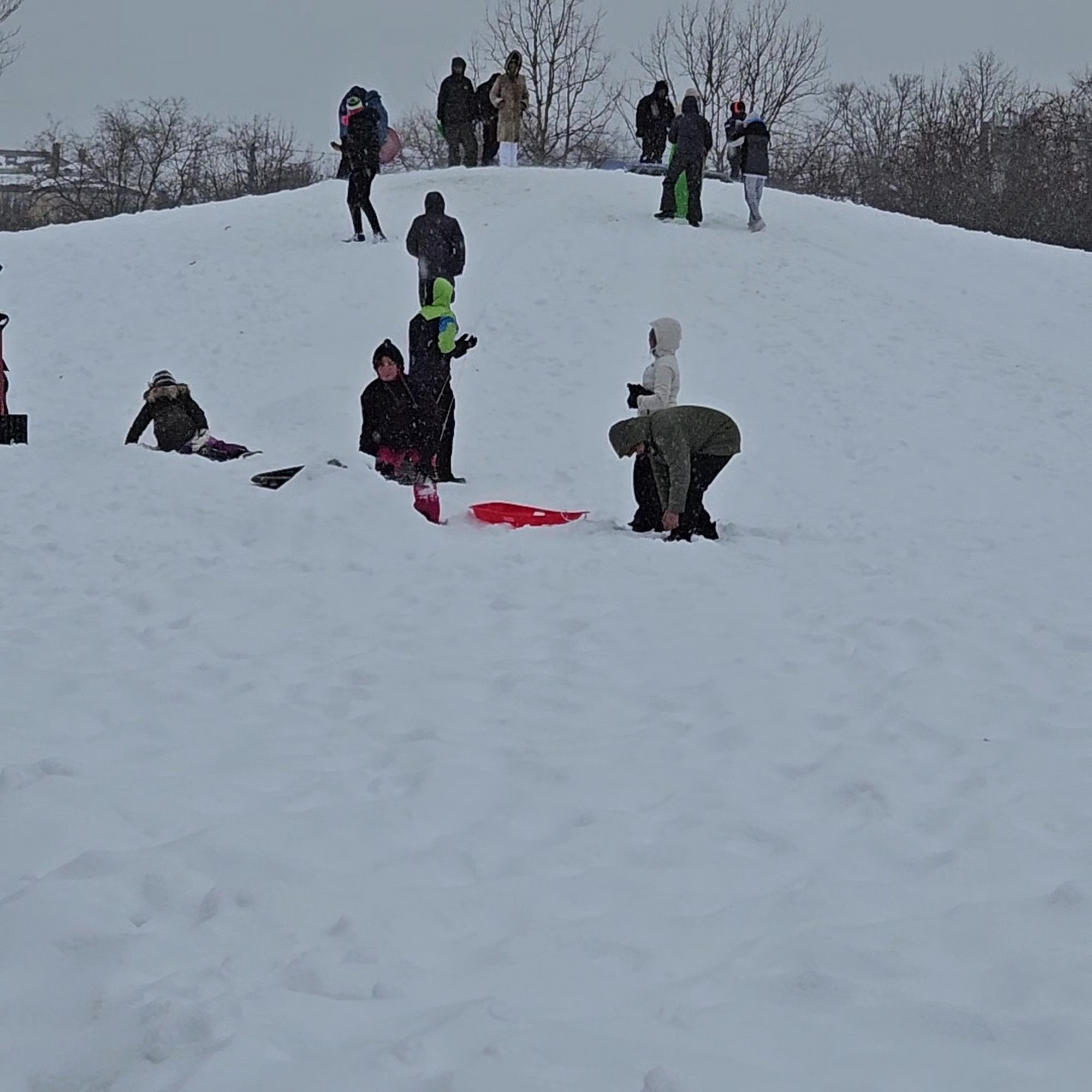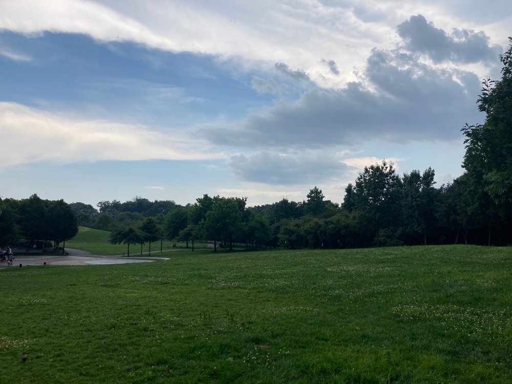 Beautiful park with lots of space for birthday parties and get togethers. Fabulous playground for the kids, great hill for sledding. Easy to get to. Very clean. Bathrooms are clean but small.