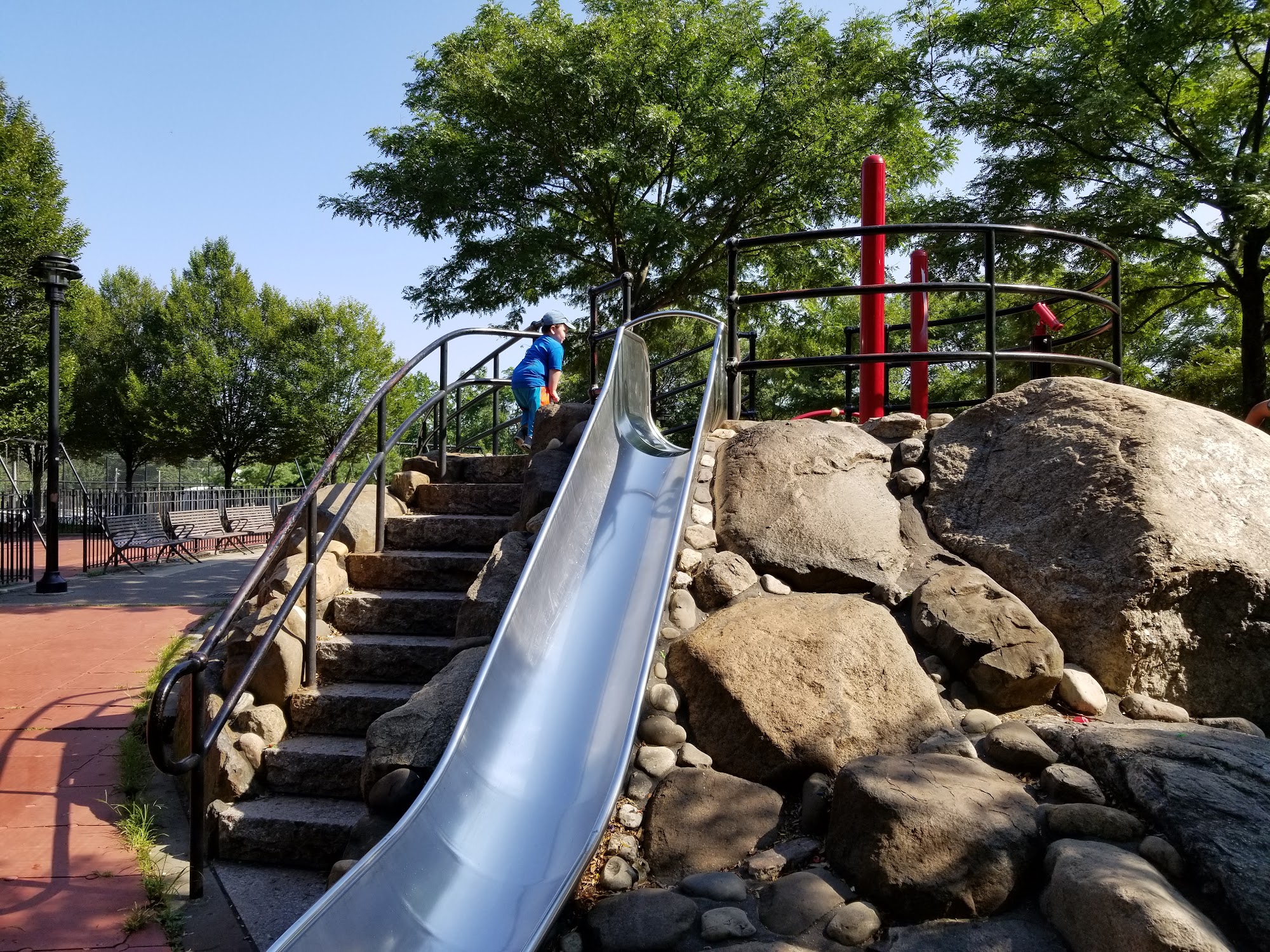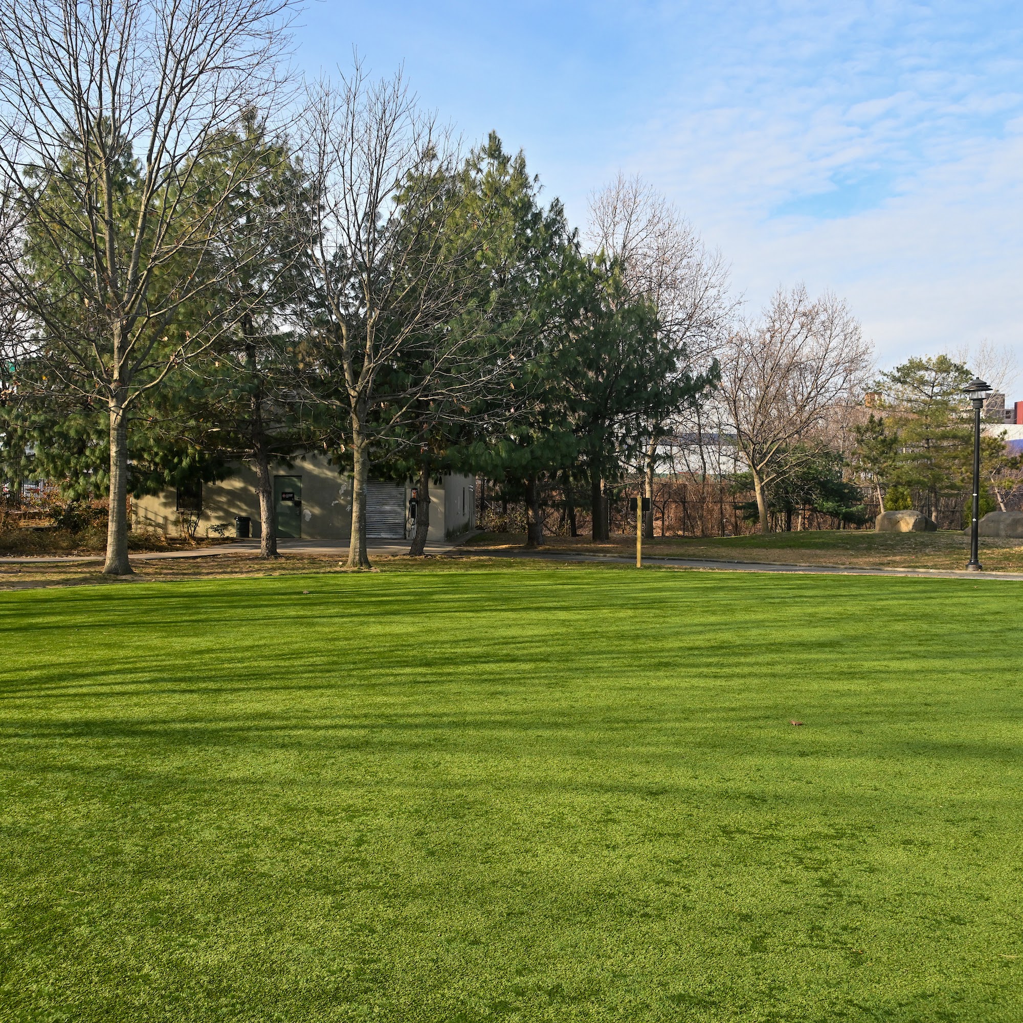 Great park!! They just redid the field in the back part of the park and kids usually go there and play pick up soccer games in the afternoon and a nice play to relax by the actual grass too!