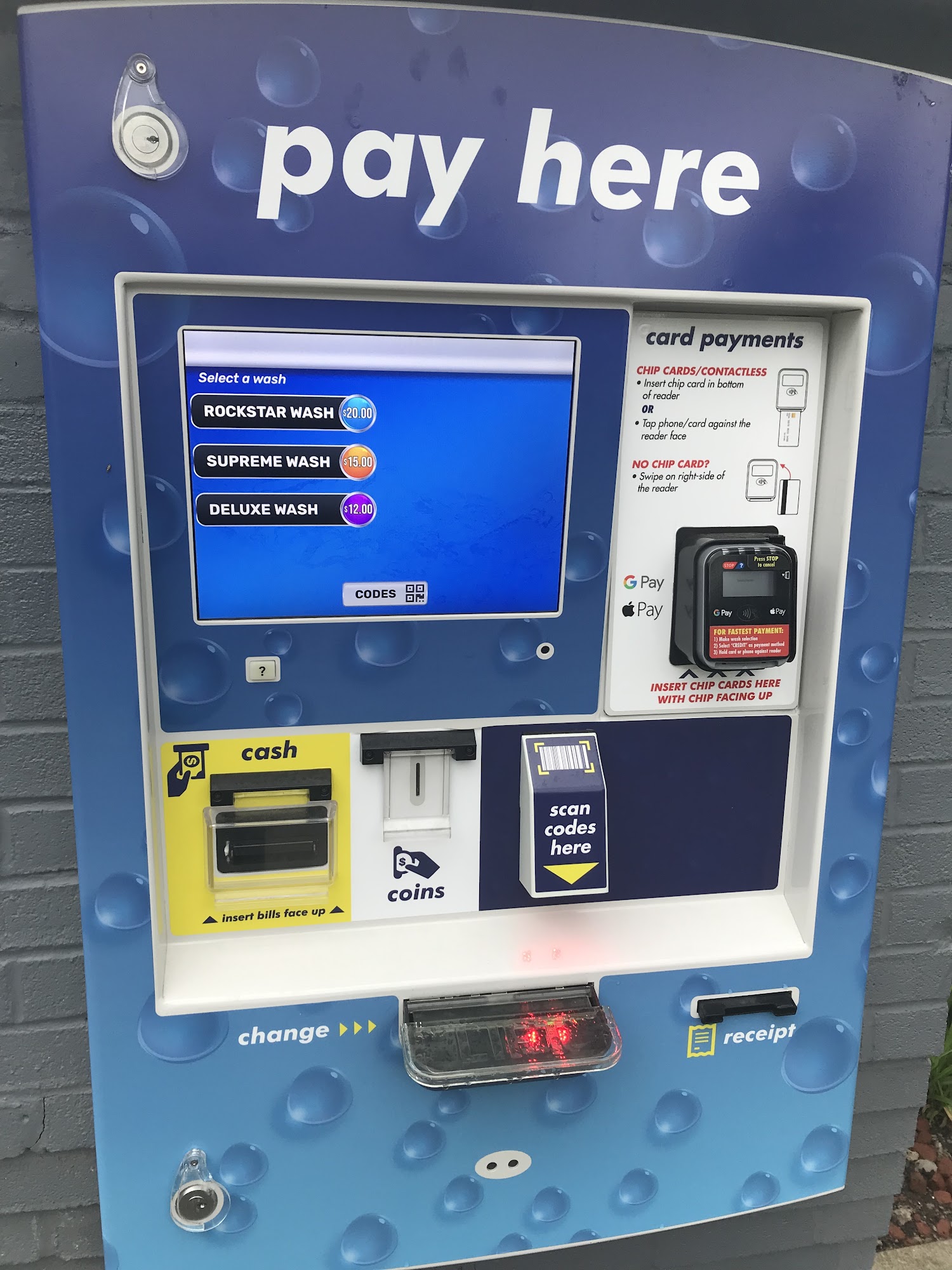 I'm very disappointed. Was supposed to be a touch free wash. It was not. Luckily, it didn't scratch my work car. Also missed a lot of spots and wouldn't take my card. If you're desperate, go ahead and use it, but there are better car washes. Go to Coxsackie and use one of the ones there
