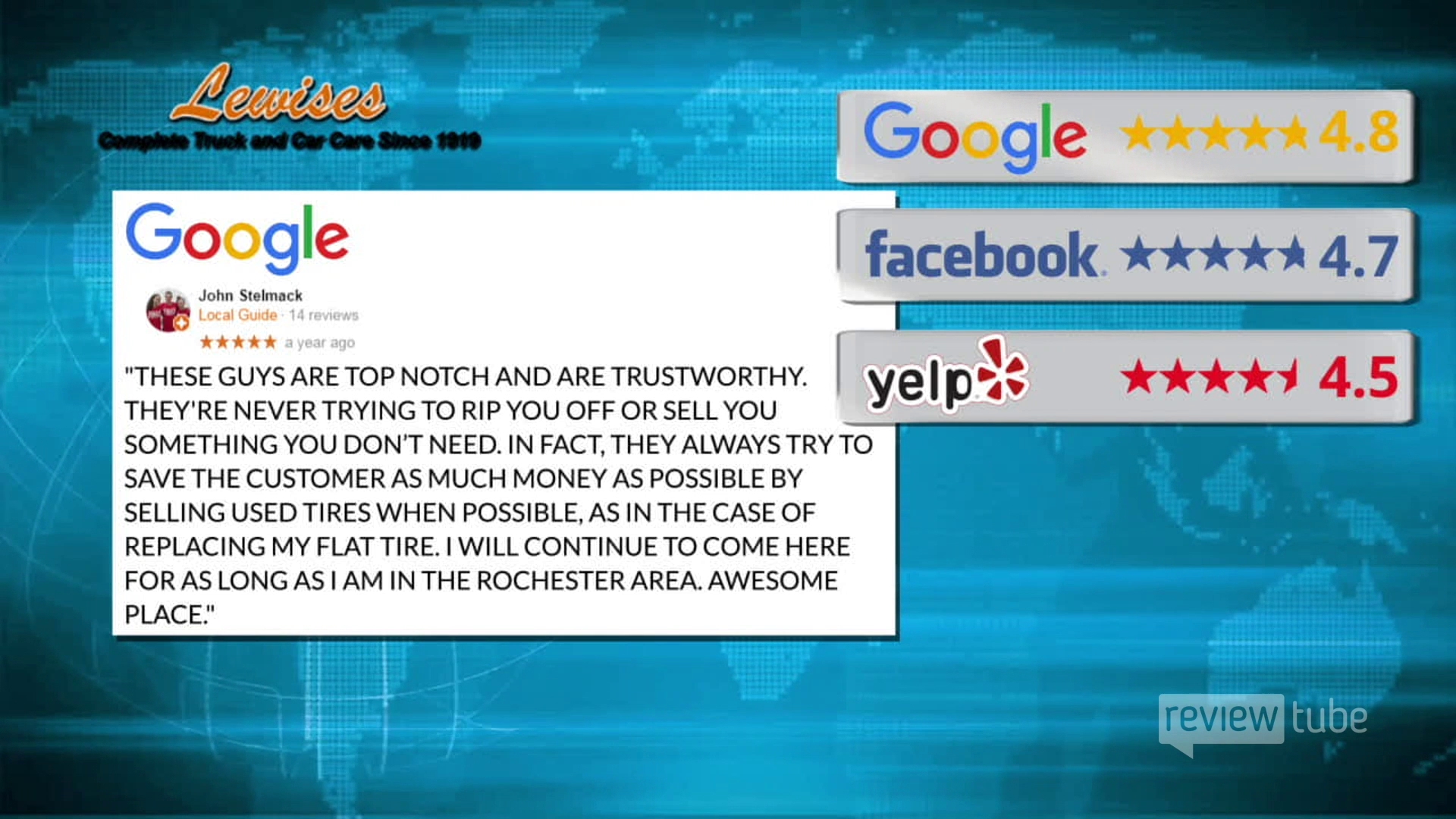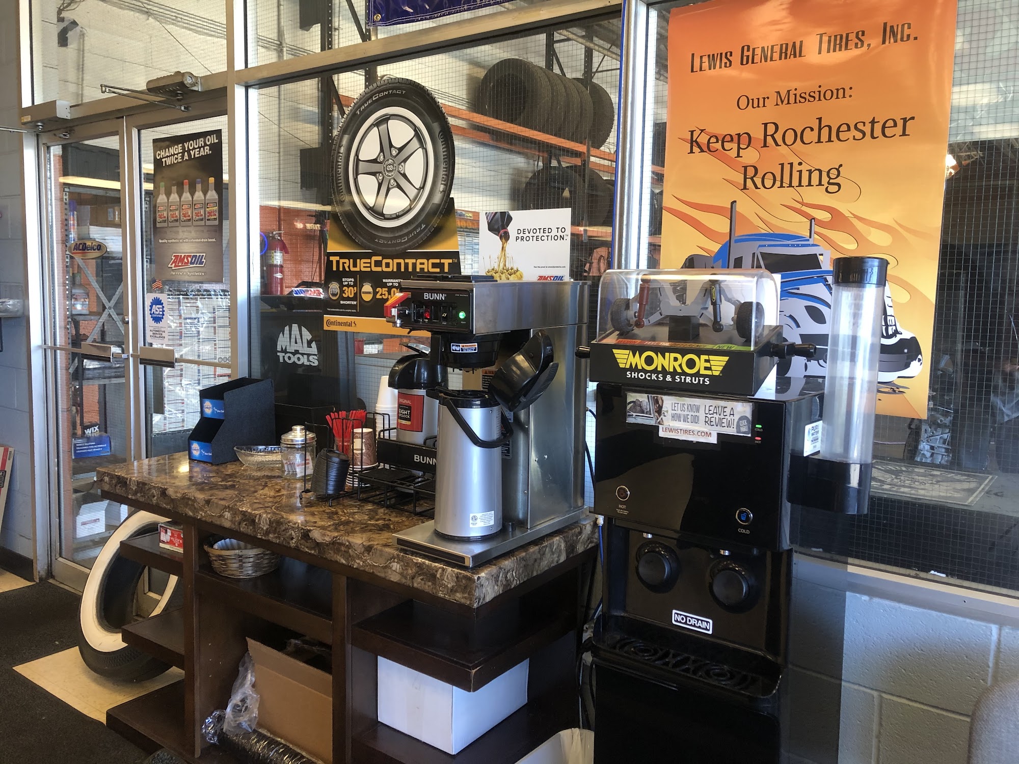Lewis General Tires is a locally owned automotive service center and the oldest General Tire dealer in the world, founded in 1919. Customers consistently describe the staff as awesome, kind, friendly, polite, and accommodating. They treat customers like family and take care of them with impeccable service. Reviews highlight that the team explains everything thoroughly, follows through, and makes stressful situations seamless and pleasant. They are praised for getting customers in and out quickly, providing unbeatable prices, and giving decent quotes without overcharging. The service is very good, with staff finding every issue and being happy to help. The waiting area is noted as comfortable. Multiple customers state they will definitely return and highly recommend the place, with one noting a 10/10 rating. The business is recognized for handling transactions smoothly, even over the phone for those far away, and for going the extra mile, such as sourcing a special tire. Overall, satisfaction is very high, with customers expressing sincere appreciation for the whole staff.