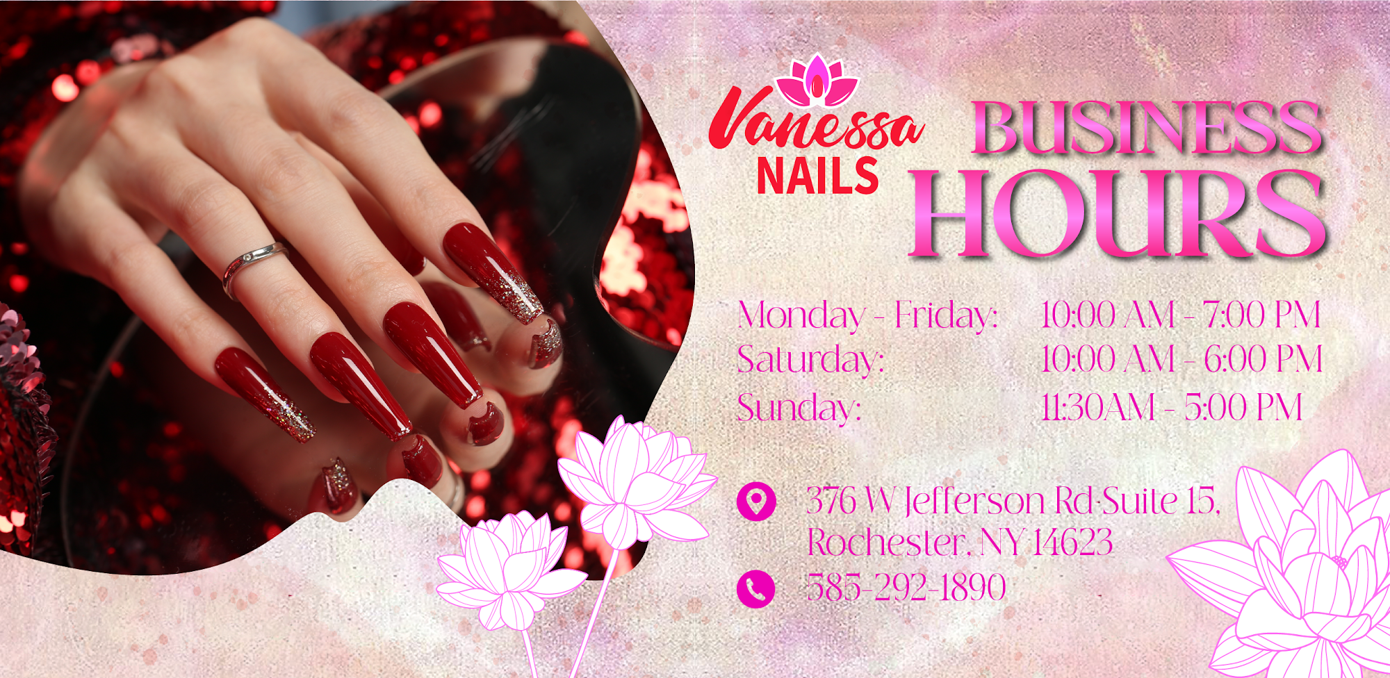 At Vanessa Nails in Rochester, we pride ourselves as an exceptional salon where you can only experience all kinds of premium services making you look and feel great every time you come to us. Our highly skilled team always strives to set the highest standards on all services with the aim of going the extra mile to ensure your complete satisfaction with these greatest things that you can only experience at Vanessa Nails in Rochester Salon.