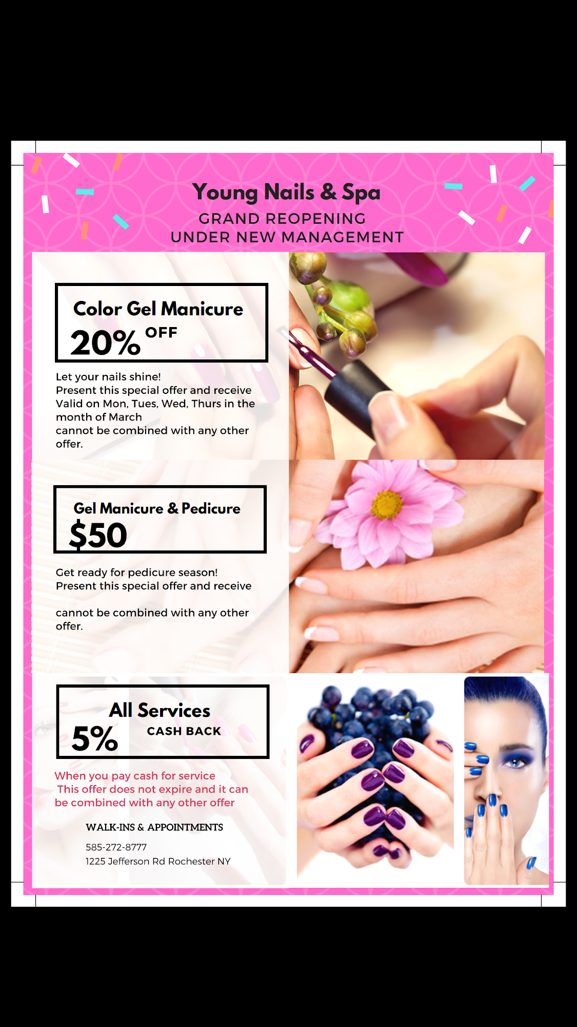 Young Nails & Spa provides excellent manicures and pedicures, praised by both women and men. The staff, including Ada, Tiffany, and Amy, are friendly and dedicated to customer satisfaction. Ada is especially talented at creating beautiful nail designs, often exceeding customer expectations. Many clients appreciate her willingness to try new styles and her perfect execution. The deluxe pedicure effectively removes dead skin and includes a relaxing hot stone massage, making it a favorite for those seeking relaxation. The spa staff often stays late to ensure customers have a memorable experience, and many visitors plan to return regularly to unwind and enjoy their services. The salon has become a top choice for clients celebrating special occasions or simply enjoying some well-deserved pampering.