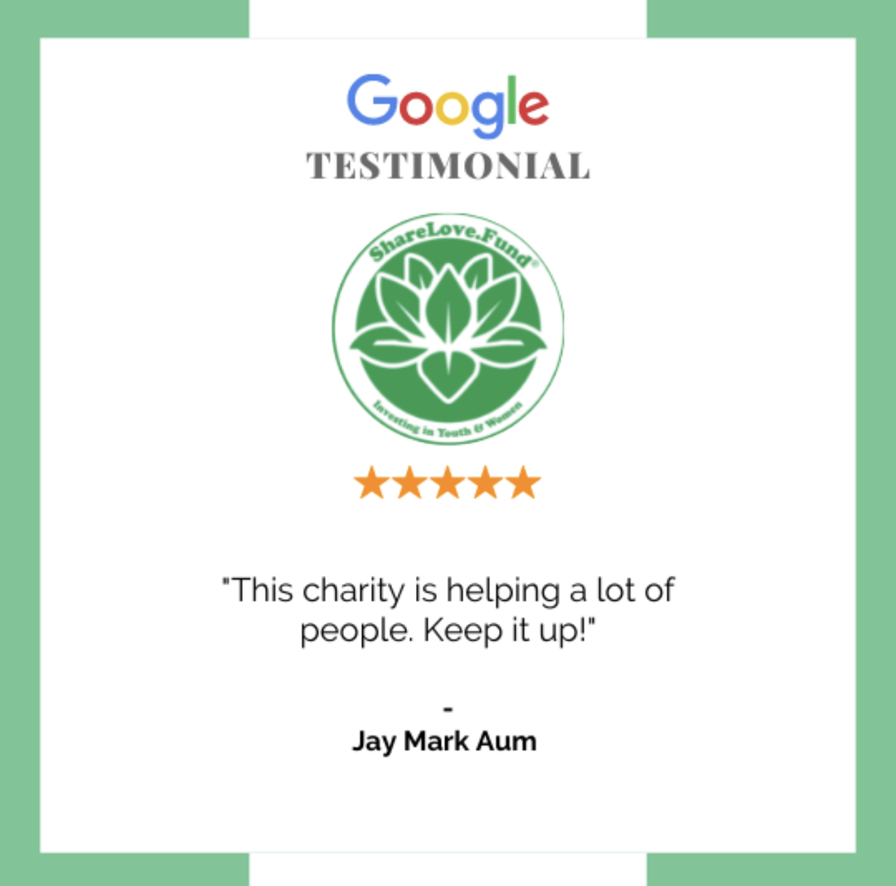 I am very much thankful for ShareLove.Fund's help when the super typhoon hit our city here in the Philippines. Thank you very much ShareLove.Fund!
