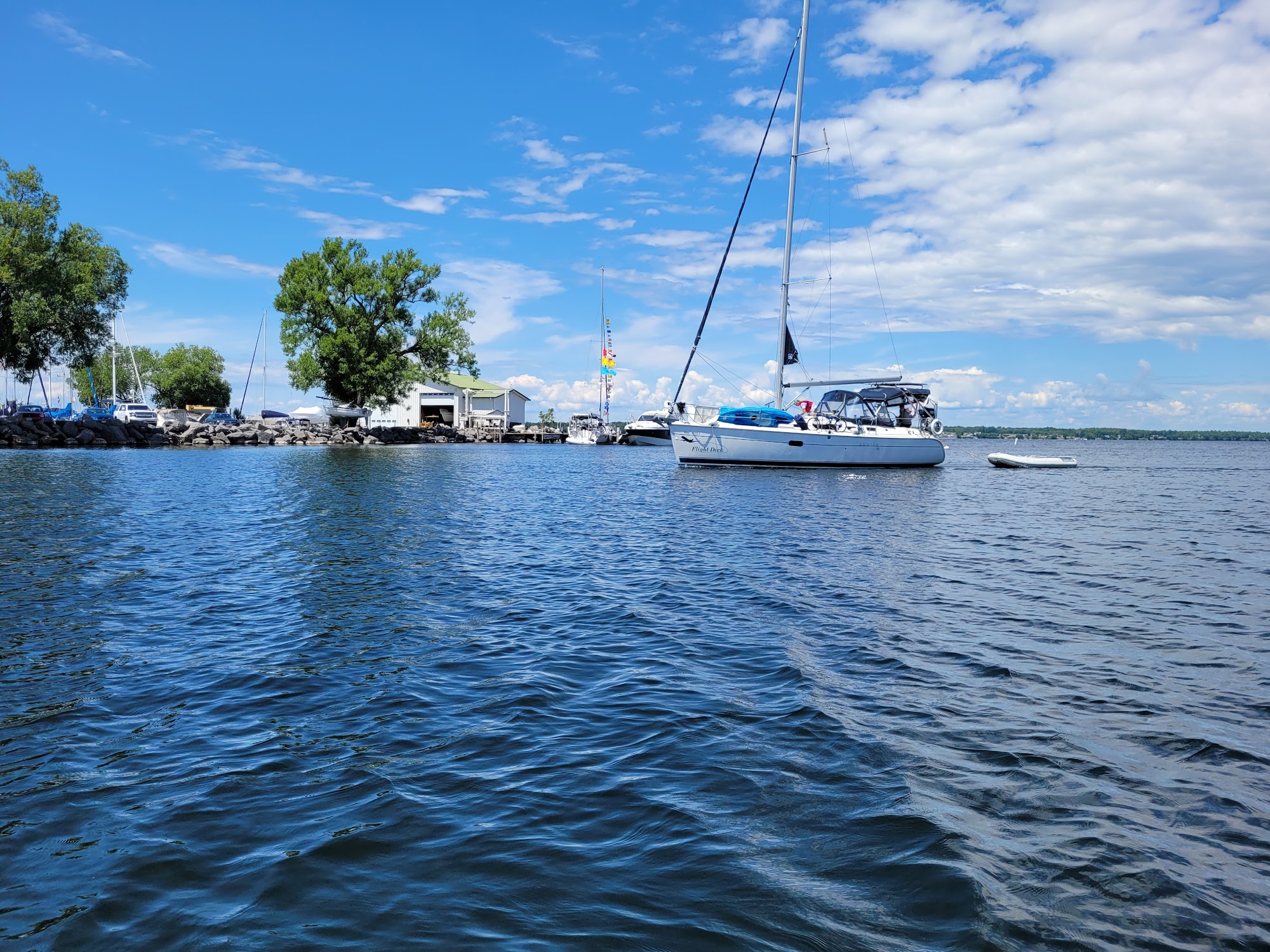 Navy Point Marine is more than just a place to dock your boat; it is a family-oriented marina with an emphasis on building a boating community. The facility is clean and well-maintained, striving to improve each year. It offers overnight, seasonal, and annual docking with amenities including free Wi-Fi, shower facilities, coin-laundry, ice, fuel, and pump-out services. There are grilling areas with flat top and gas grills, green space for lawn games, and an unobstructed view of the sunset. The marina provides awesome affordable boat slips with a camera so owners can see their boat. It is a short walk to bathrooms, an on-site grocery, and Sackets Harbor restaurants and ice cream. The staff and harbormaster provide exemplary service, noted for great diligence, transparency, and enthusiasm. Their service is described as fantastic, attentive, thorough, very responsive, and the easiest, most up-front transaction ever, highly recommended for both selling and purchasing vessels. They are outstanding in helping, especially for first-time boaters, with finding the perfect boat and facilitating the entire process.