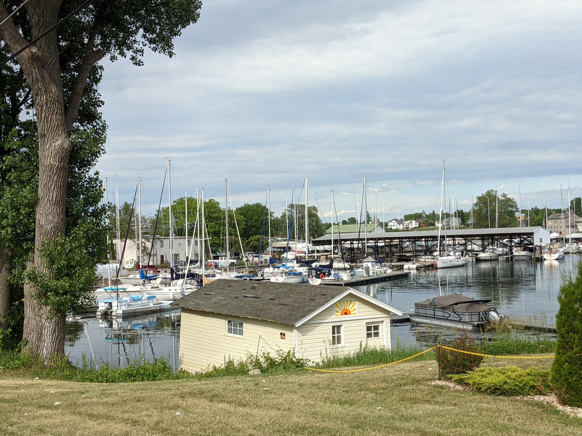 Awesome affordable boat slips. Camera so you can see your boat. They are working on the bathrooms, short walk away. Grocery on site, walking distance to Sackets harbor restaurants and ice cream. Still early in the season so not full yet.