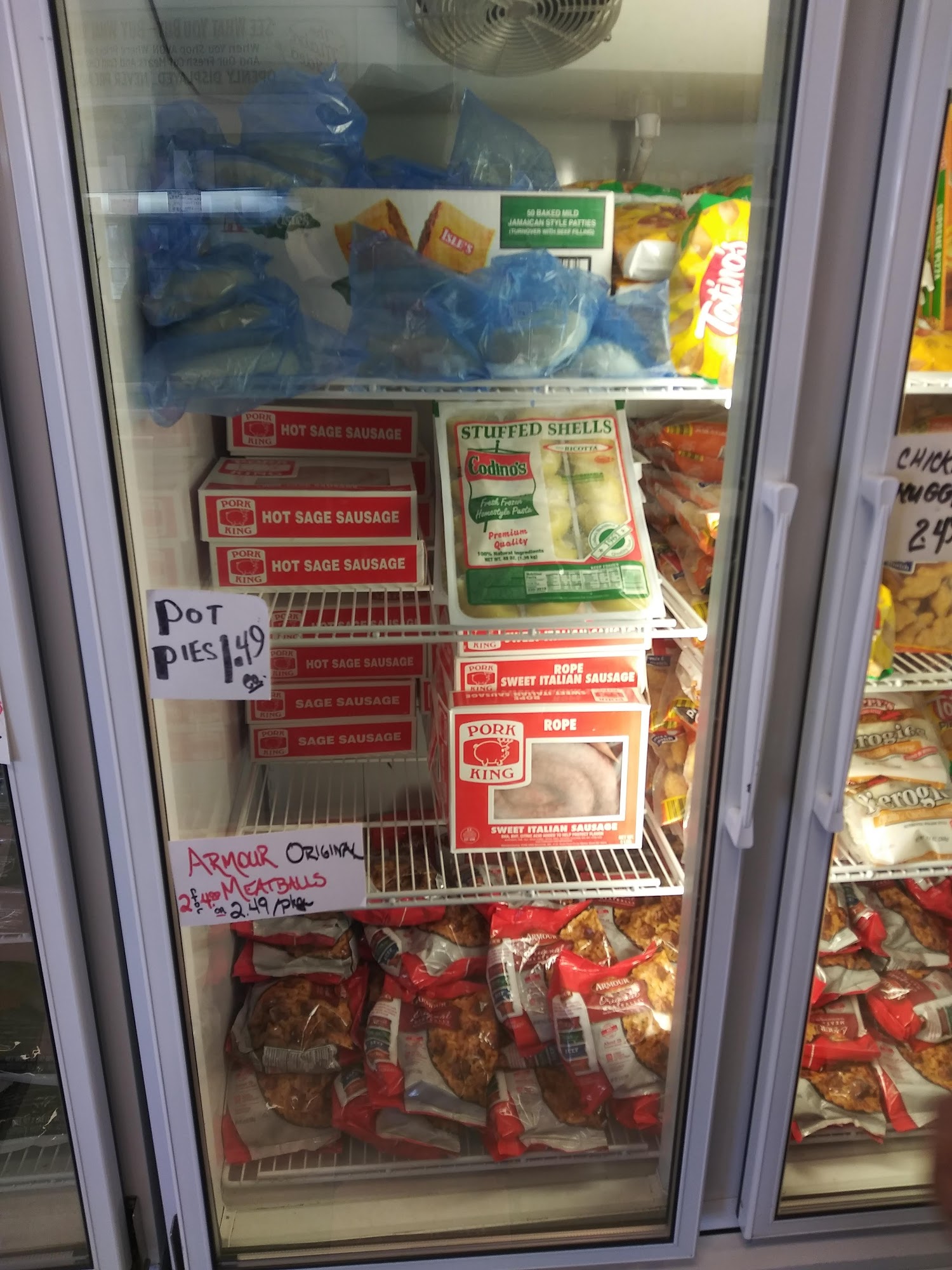 A ton of different meats, and frozen items. Prices were much better than the grocery store. Definitely worth checking out. Service was great. We bought t-bones for a lower price than the grocery store and they were great.