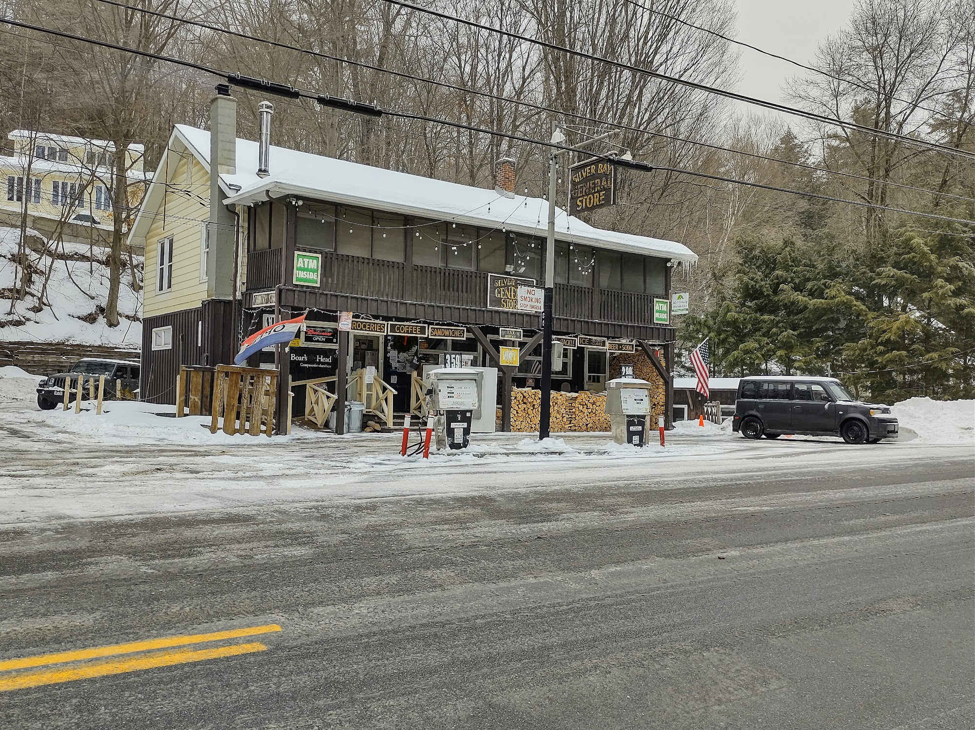Silver Bay General Store is an excellent shop loaded with small town charm and is one of a kind. It is a great, very convenient store for basic needs, essentials, groceries, beverages, supplies, snacks, souvenirs, and fuel. Under new ownership, it now takes credit cards and has an expanded merchandise selection featuring many regionally and locally made items like bread, maple syrup, fresh bacon and eggs, gifts, and old fashioned candies. The fresh breakfast and lunch sandwiches are delicious, and they also have iced coffee. The owner and staff are super, friendly, helpful, and knowledgeable of the area. This cute store is packed with a lot and adds to the whole ADK vibe, saving a drive to other towns.