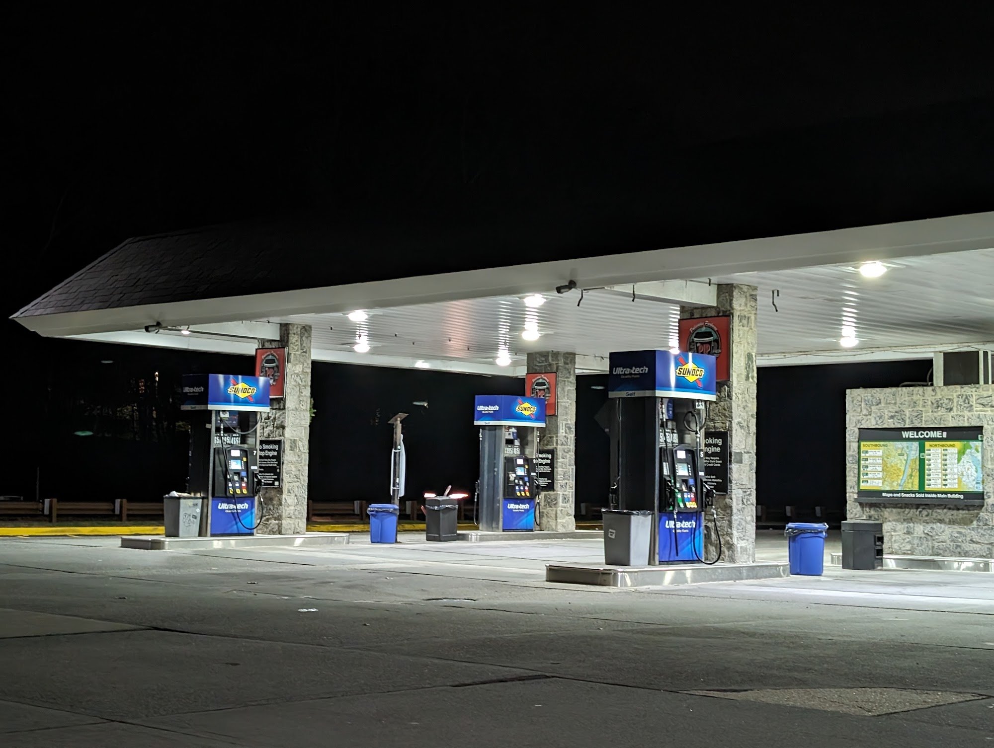 The Sunoco P.I.P. Stop is a gas station, convenient store, and rest stop located on the Palisades Interstate Parkway in Tappan, New York, between exits 4 and 5. It allows for easy access from both northbound and southbound lanes. This is a great gas station described as quick, reliable, and always a smooth experience. It is always clean, easy to pull in and out of, well maintained, and has fair prices. The store is well stocked with a large selection of candies, drinks, and hot and cold food items, including hot and cold vegan options. It offers a large variety of certified kosher concessions and many strictly kosher products. It has a very very convenient store with lots of good things at cheap prices and the best self serve coffee. The staff are polite, helpful, and friendly. The place provides a good service, with clean and comfortable restrooms available, which is super convenient on the road and the only bathroom for miles. It is a convenient stop for anyone traveling the Palisades.
