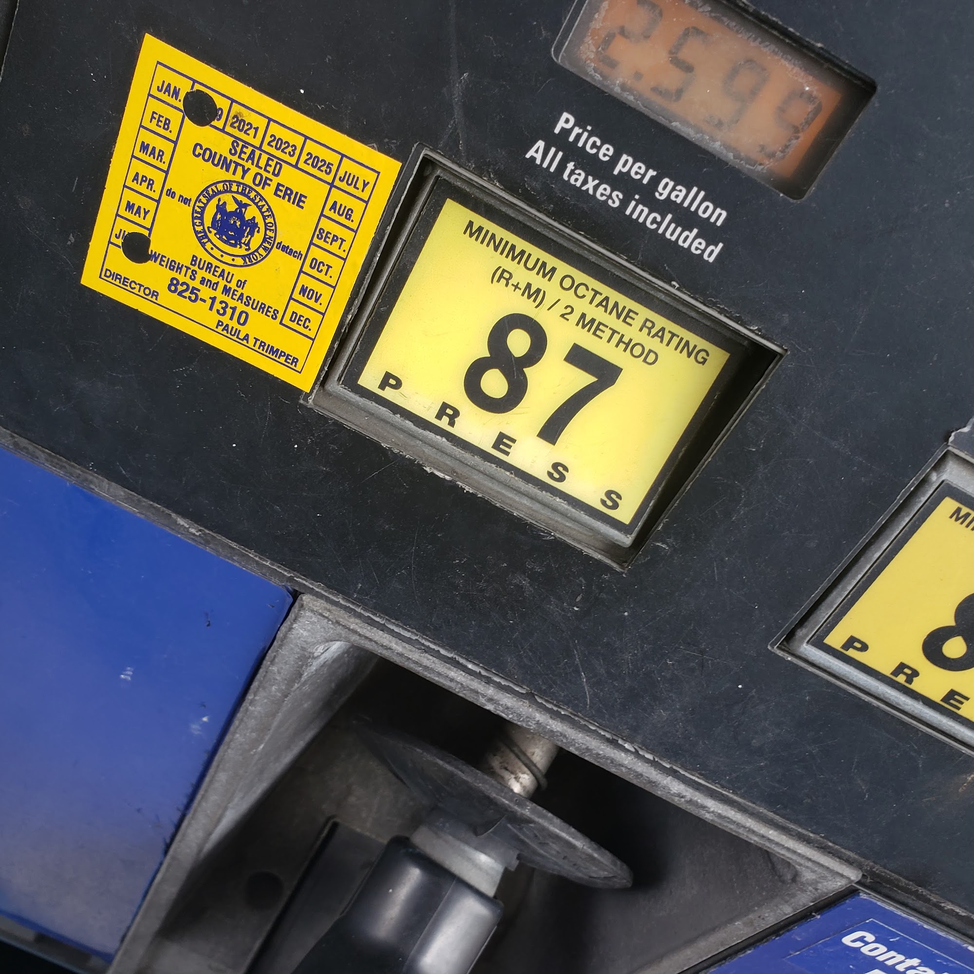 Older style gas pumps, the gas was slightly cheaper here then other nearby locations.