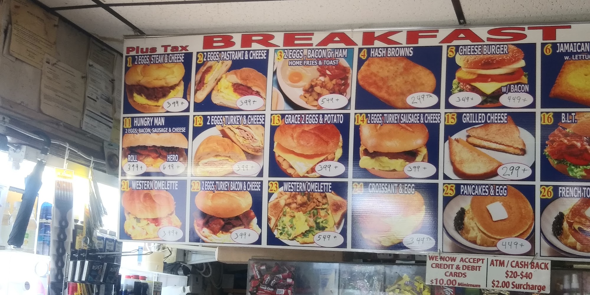 Cheeseburger w. Fries:$5, Excellent pastrami hero:$7. I go there several times a week!
