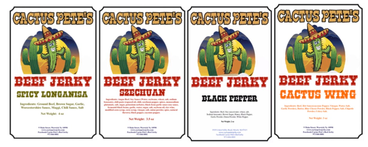 Our main product is beef Jerky (Flavors are : Teriyaki, Longanisa (made out of ground beef -sweet & garlicky), Death By Garlic (Italian garlic bread-sugar free, Gluten Free), Jamaican Me Not So Crazy, B-B-Q, Campfire (Smokey, medium heat-Our best seller), Jalapeno, Szechuan (Our original flavor), Spicy Longanisa, Cactus Wing (Buffalo Wing flavor), Black Pepper, Jamaican Me Crazy & Ghost Biltong(Our spiciest flavor). We also make other products such as Frozen Lumpia( Authentic Filipino Pork Filled Roll), Garlic Peanuts, Sweet & Crunchy Pecans & Walnuts, Tallow and more... But we carry other products at the store like Exotic Jerky, Jerky sticks, Hot sauces, Pickles and more.