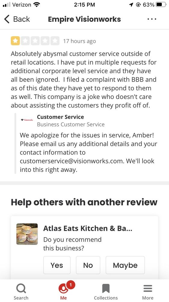 My experience was amazing! The woman who did the puff test and the intake information was so personable , I really wish I hadn’t forgotten her name because she was amazing. The Dr. was extremely nice and so were the staff that helped check out with new glasses! Amazing experience