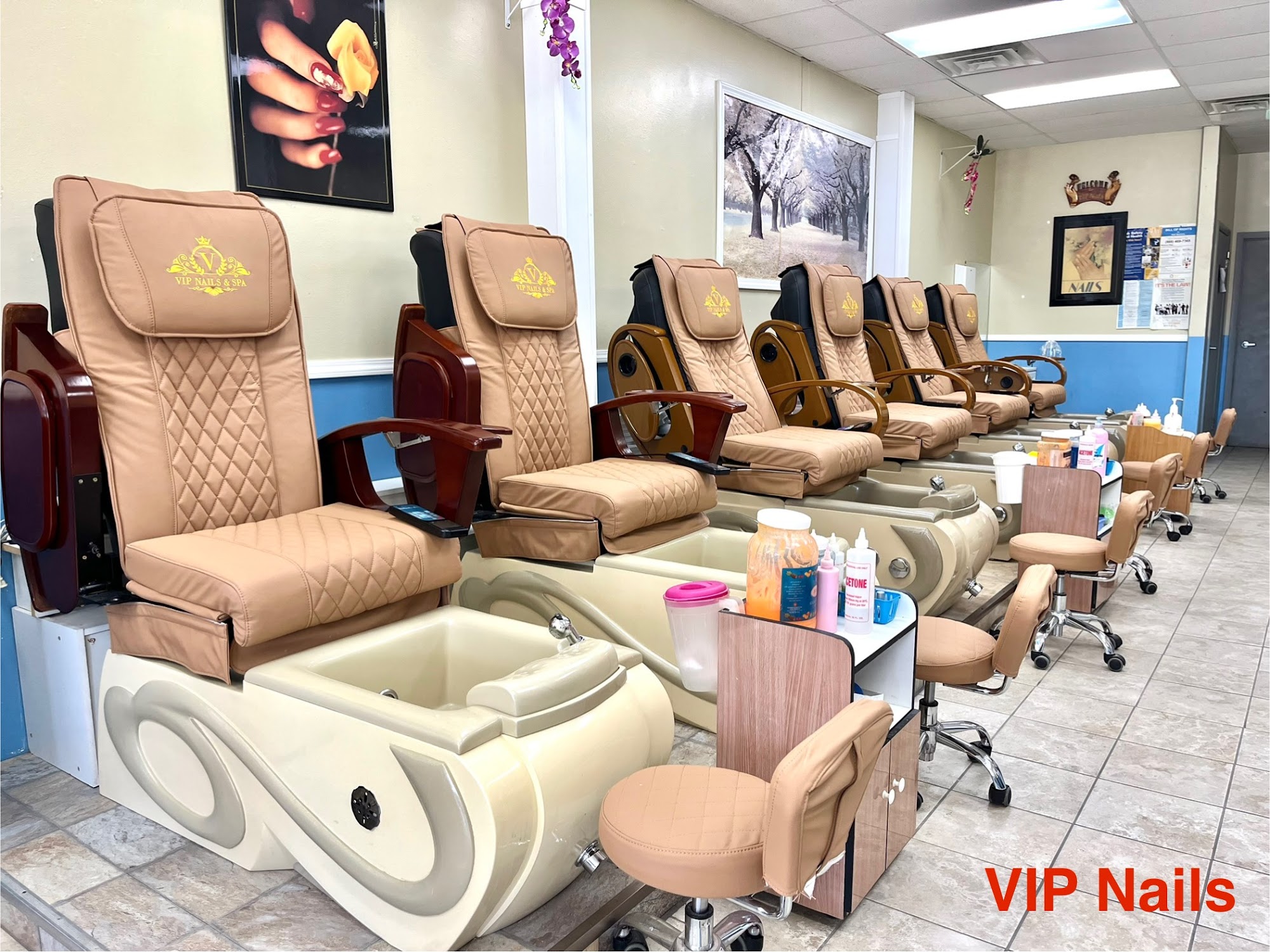 VIP Nails provides excellent service, accommodating last-minute appointments and offering reasonable prices for gel removal, gel paint, and manicures. The staff is professional, taking their time to ensure beautiful results, and providing relaxing foot and leg massages. The salon is clean and features comfortable massage chairs.