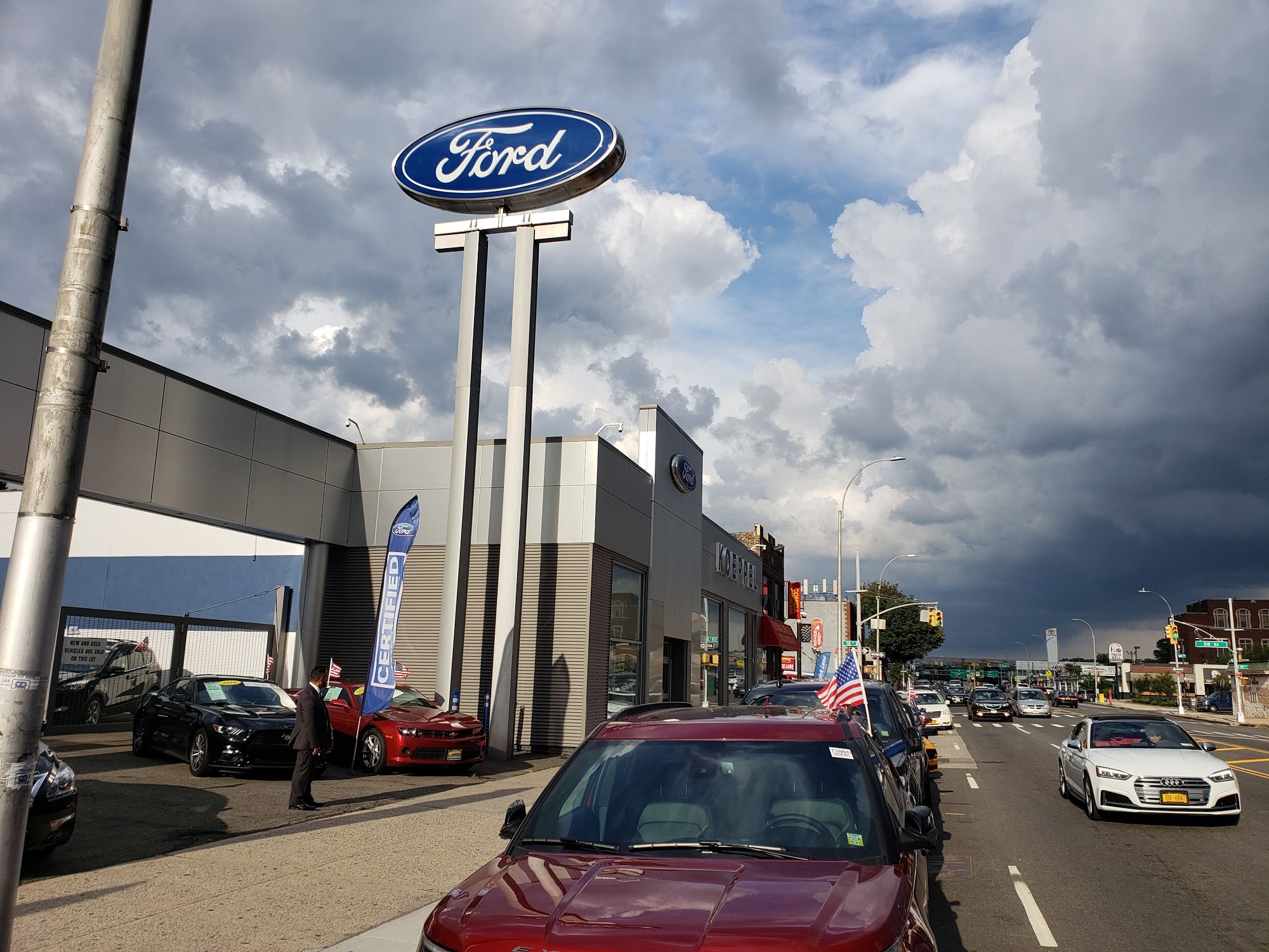 Koeppel Ford on Northern Blvd. in Woodside, Queens is NYC's newest Ford dealership, part of a group serving New York for over 80 years. It offers new Ford models like the Explorer, Maverick, Escape, Edge, and Mustang, as well as used vehicles. Reviews consistently highlight great customer service and great deals. Customers describe their experiences as wonderful, efficient, and probably the best car buying experience. Staff members are noted as extremely patient, polite, professional, knowledgeable, helpful, honest, and efficient from initial contact through the entire process. Many reviewers state they would highly recommend Koeppel Ford to anyone looking for a new or used vehicle, with several driving away with a big smile.