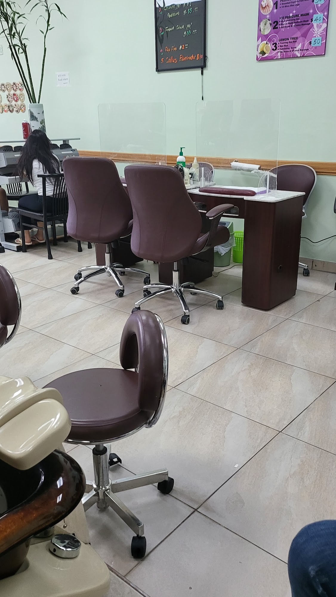 I like that's there isn't a wait time most of the time. Prices are reasonable and location is convenient. However they are not good for any kind of design nor nail shape ! Its a decent spot for a quick mani / pedi.