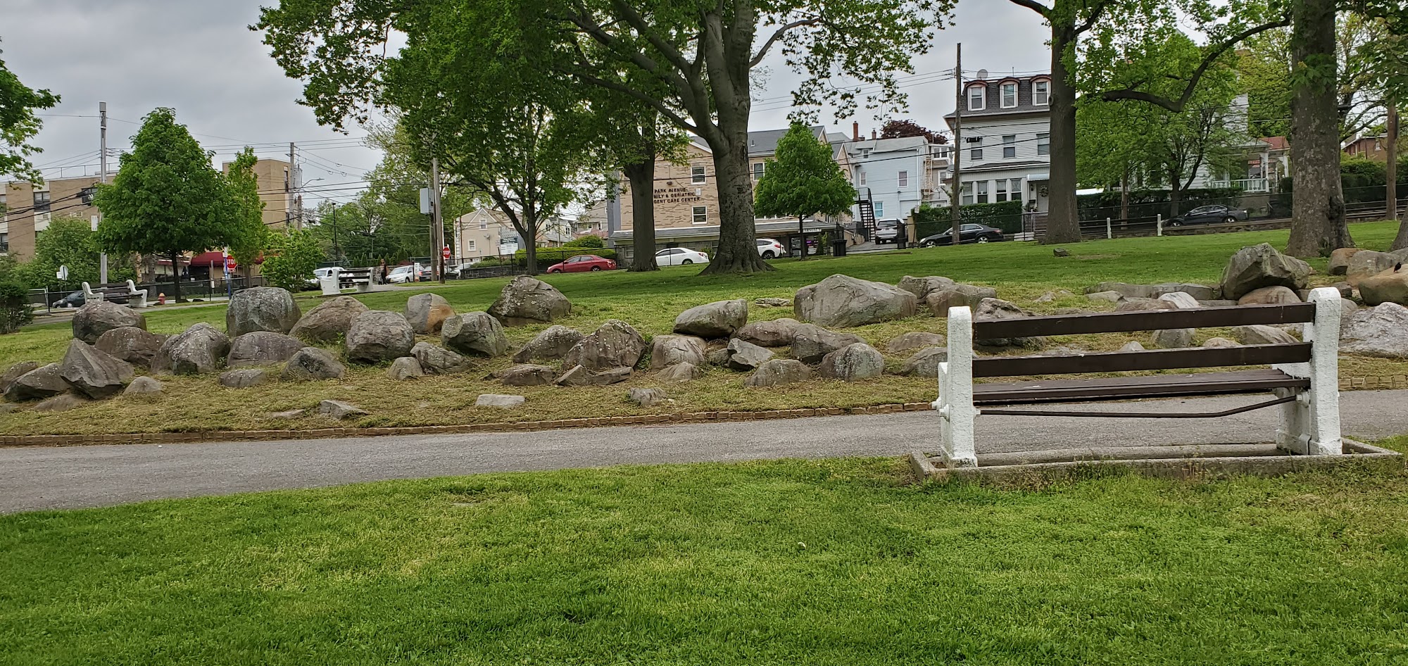 Grant Park is a very large, beautiful, and circular park with a paved trail, lots of trees, and a garden. It is a good picnic area, but you cannot grill. It has a small playground with swings and slides, a full-size basketball court with rims, benches, and big rocks to play on. It is very clean and quiet in the daytime, but it is a safety hazard at night.