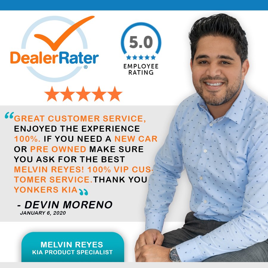 I am a repeat customer, 2nd lease purchase. Melvin and Ramon were so helpful, informative and honest about the best deal they could offer me. Highly recommend the Yonkers KIA on Central Park Ave! Love my new ride!