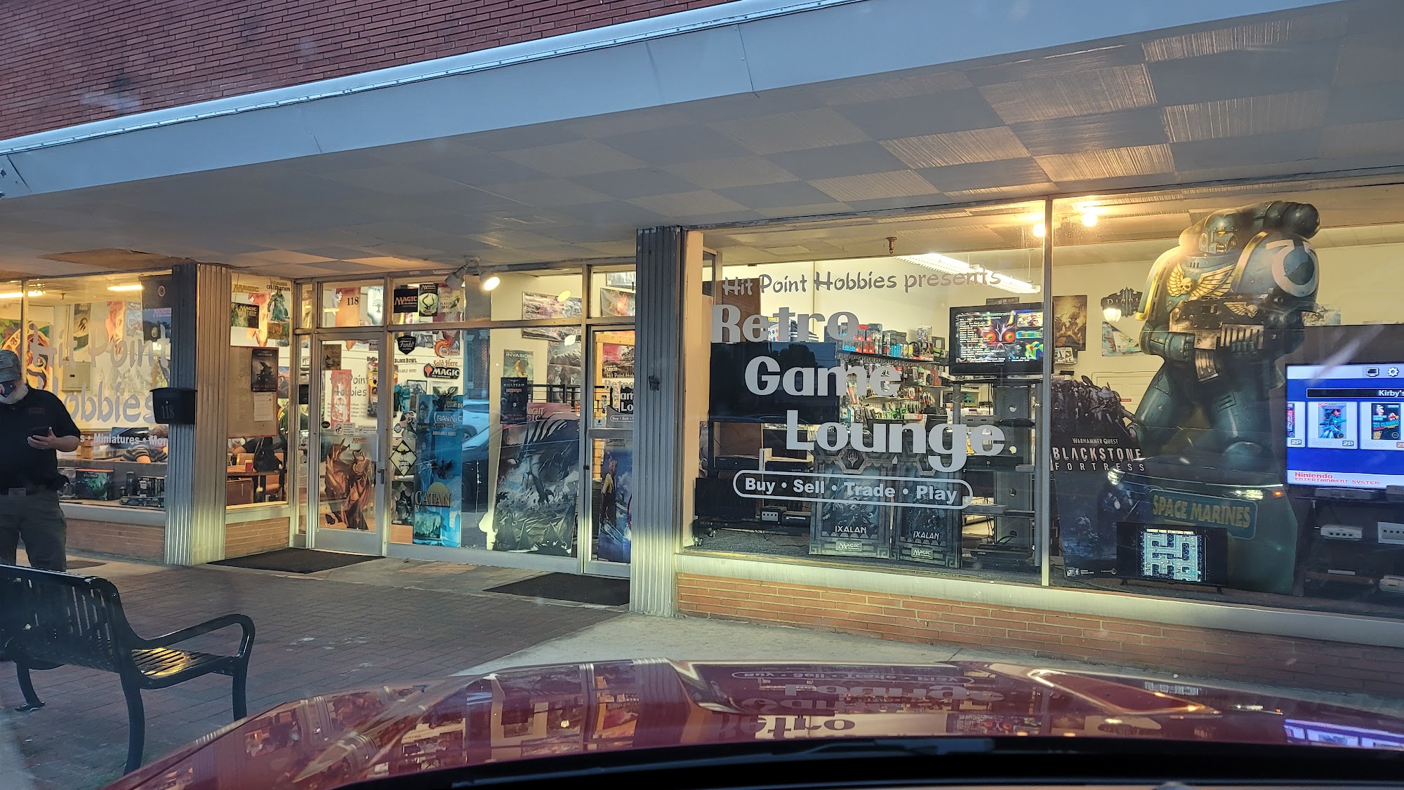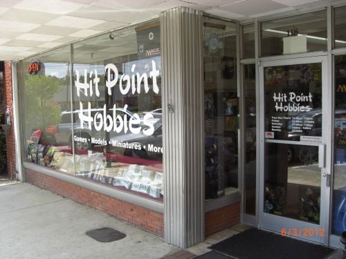 Hit Point Hobbies is an amazing gaming center and the best place in the county for community gaming. It sells everything someone could need for a variety of video, card, and other games, including gaming controllers, dice, figurines, and materials for games like Dungeons & Dragons, Magic: The Gathering, Warhammer, Yu-Gi-Oh, and board games galore. They have many free groups and competitions to enter. The space is a bit small, but the staff are very friendly, helpful, patient, and kind. They are very knowledgeable and will help you look for stuff. One staff member is a cool dude who does the best job getting what you want and need, and another is a spicy, knowledgeable dark-haired lady who makes the place worth visiting and keeps people following the rules. There is also a cat. It is a wonderful store with great service and good prices, and a place to play games and hang out late. Some reviewers note that, unfortunately, there can be instances of people making racist jokes or comments.
