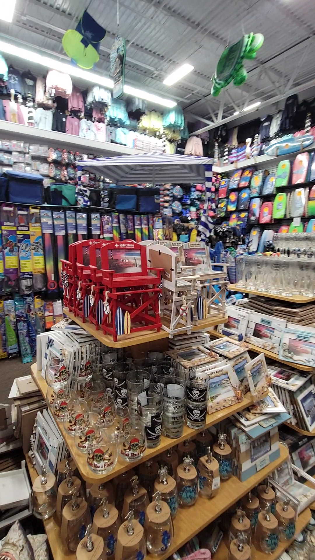 Super Wings is a typical cheap shore t-shirt store that carries a brand called "Momentum". The shirts are actually half-decent and not super expensive. Customers report having a blast at the store, enjoying the large selection of shirts, beach chairs, cups, OBX playing cards, and hoodies. While it's a one-stop souvenir shop, there are better locally-owned shops in the area to check out. The store has an excellent selection with prices roughly similar to other stores, and plenty of parking. Customers recommend looking for bargains at thrift stores up and down NC-12 before buying t-shirts.