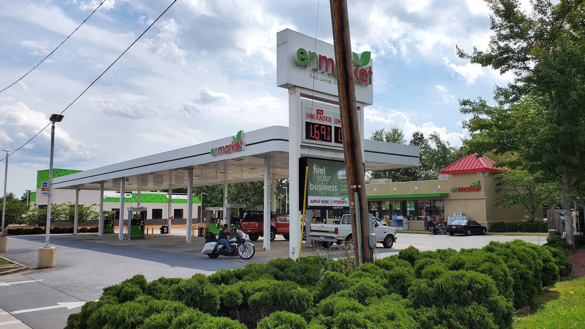 Enmark Stations offers some of the cheapest gas in town with many pumps. The store provides a wide variety of snacks, drinks, hot food, fountain drinks, and frozen drinks, all at very reasonable prices. The store and bathrooms are consistently clean. The staff is courteous and goes above and beyond, creating a safe and caring environment. The convenience is enhanced by services like a free rewards card for complimentary drinks and new self-checkout options. It is noted as a reliable place even during community hardships.