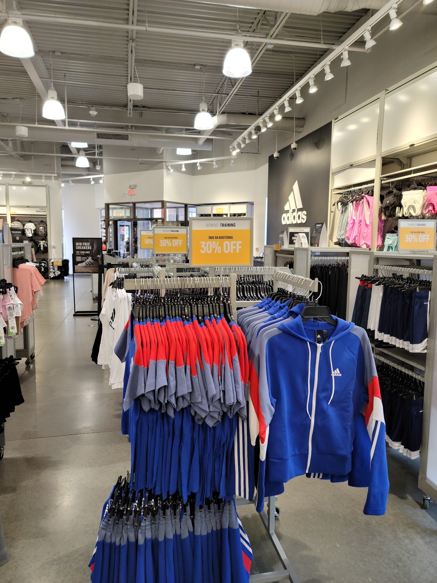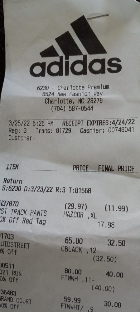 The adidas Outlet Store Charlotte is a retail store offering the brand's athletic footwear, clothes, and accessories. Customers find the store well-organized, clean, and a good place to find deals, especially on clearance items, with discounts often around 50%. However, some reviewers noted that the women's section is smaller with less variety compared to the men's, and recently, the selection of women's clothing and white sneakers has been limited, with some shoes showing a yellowish tint that shoppers dislike. The store experienced a remodel, which seemed to reduce the amount of women's clearance clothing available. Customer service received mixed reviews; one employee was praised for being helpful, caring, and making great conversation, while others found the store to be average or lacking in good deals during their visit. The store occasionally smells bad, though staff members are generally helpful and assist with finding products. Due to the store's temporary closures for health and safety reasons, visits might be affected. Overall, it is a decent outlet location with good deals, but visitors should be aware of limited women's options and variable pricing.