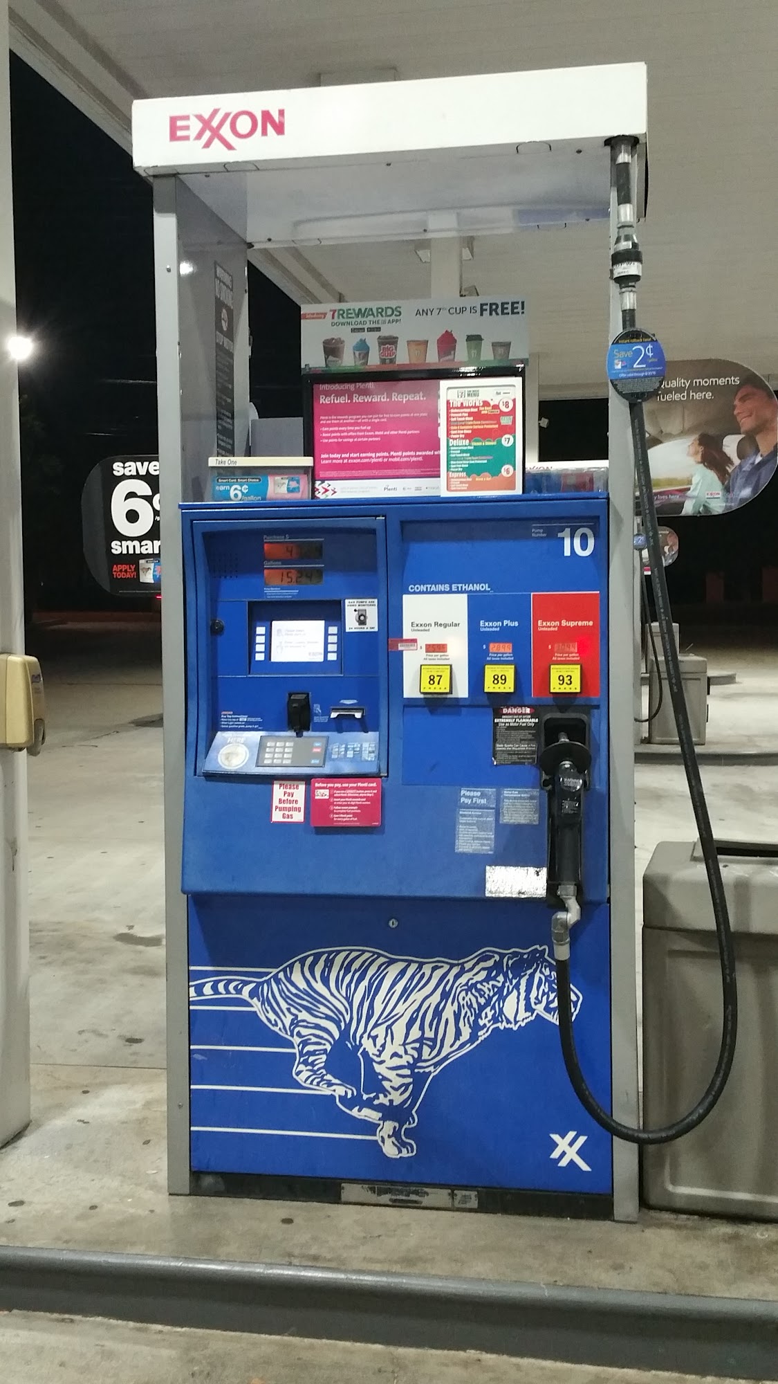 Gas price is cheaper with Walmart + card. Get an extra 10cents off regular price.