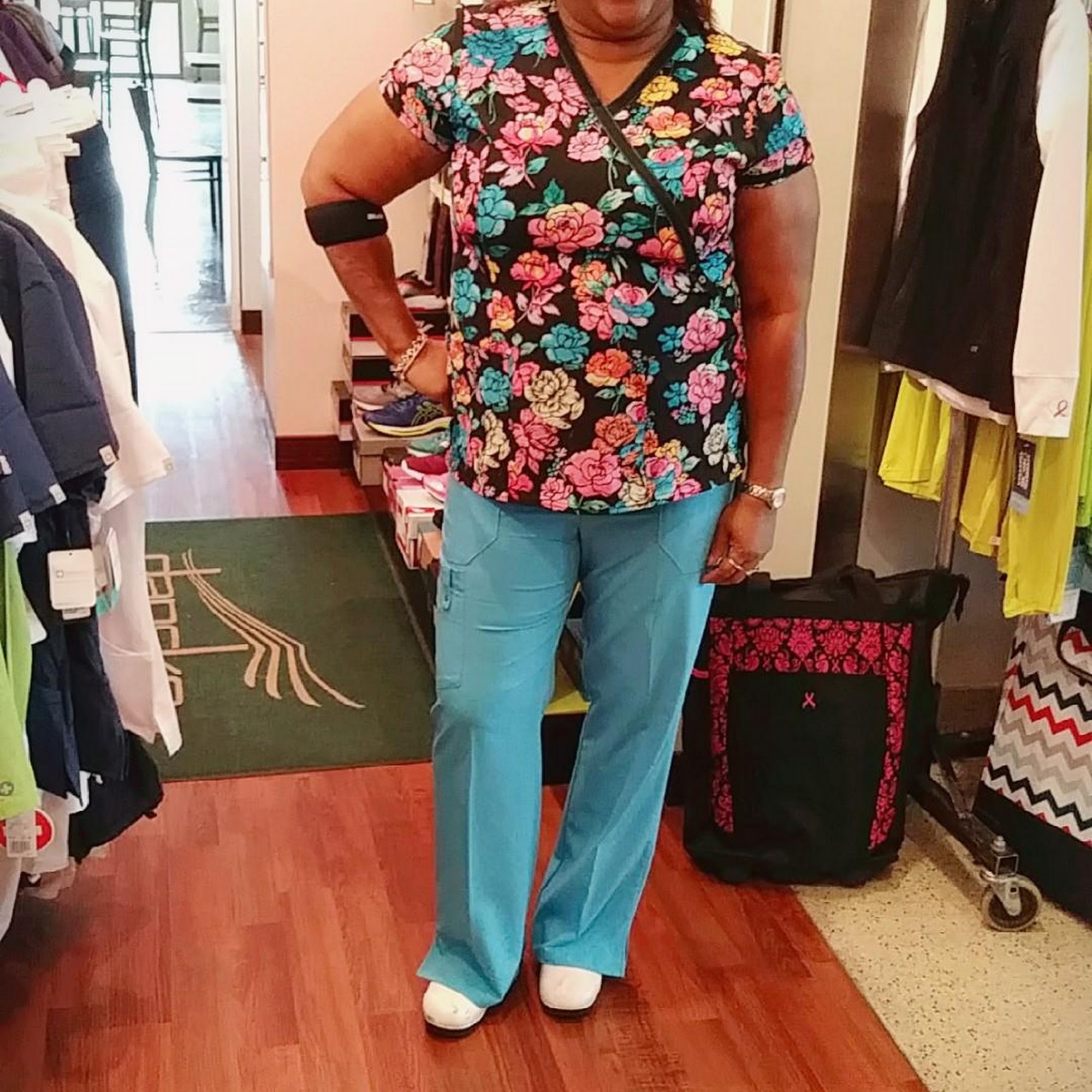 I like the customer service. Val is always nice. The variety for grape color uniforms is however limited & not in my size. It has to be ordered. It would be nice if it was in the store.