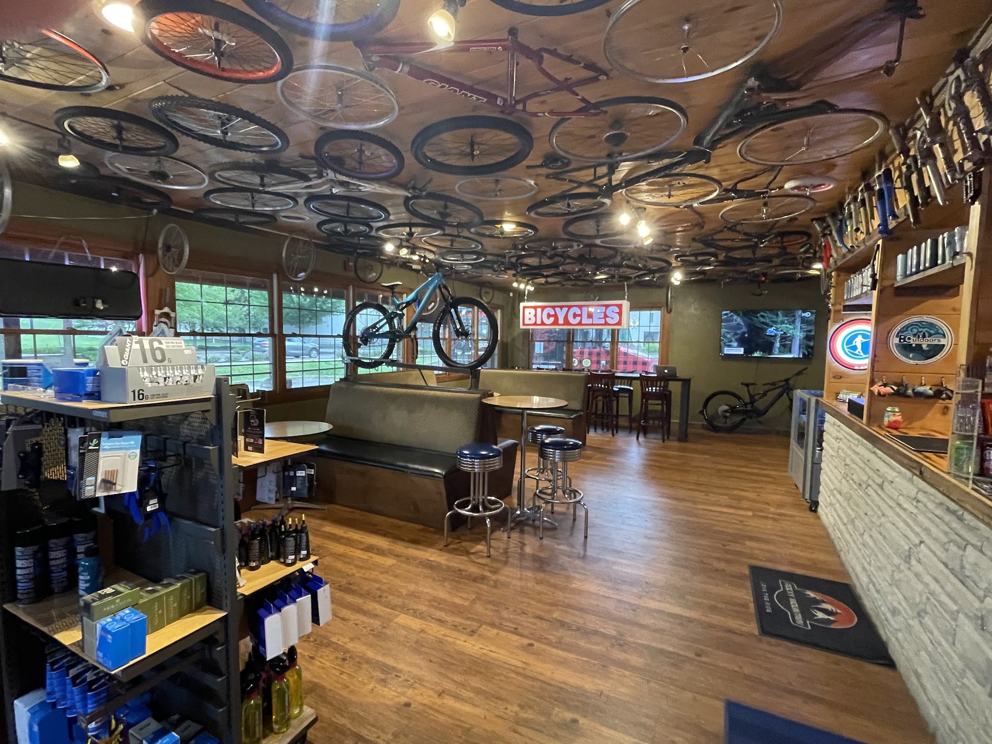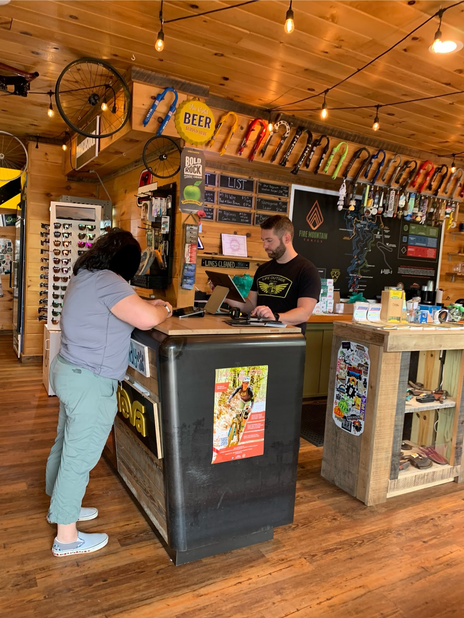 BIKES, BEER & GEAR! Mountain Bike Rentals and E-Mountain Bike Rentals are available daily, pre-book or walk up. We have a service department that is happy to help get you bike back in pristine condition. Our core bike brands for retail are Giant, Rocky Mountain and Salsa. We have a unique selection of hats, t-shirts, and stickers that we design ourselves! We also offer items from top brands like , Marmot, Kelty, Gregory, Merrell, Adidas Outdoor, Danner Boots, Altra, Sea to Summit, Jetboil, Kavu and many more. We are the spot to stop before and/or after your visit to Fire Mountain Trails, Great Smoky Mountain National Park. We are dog-friendly!